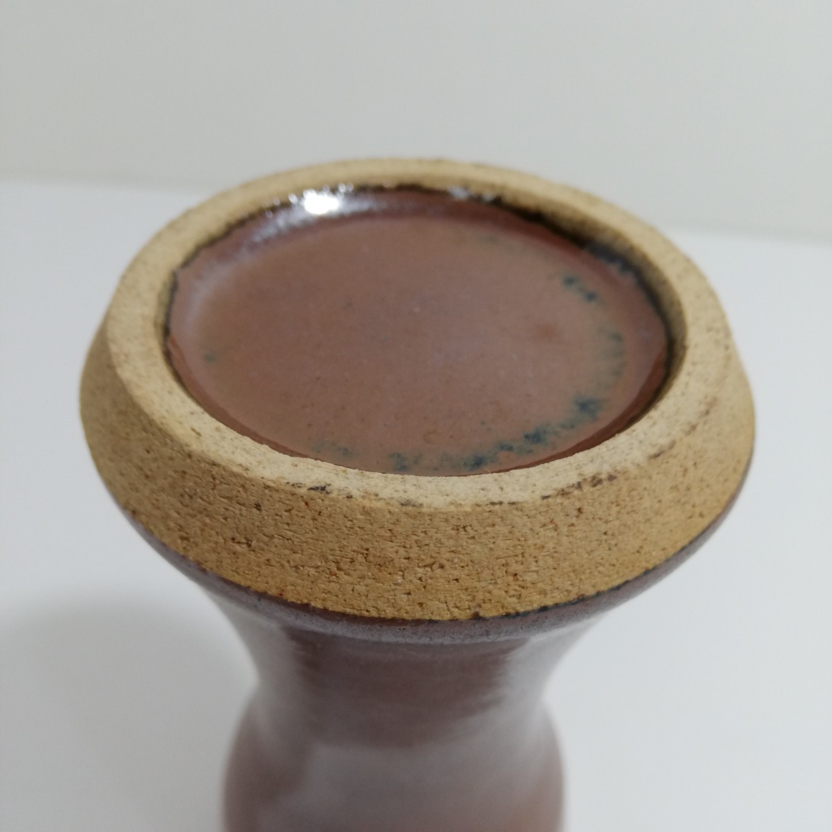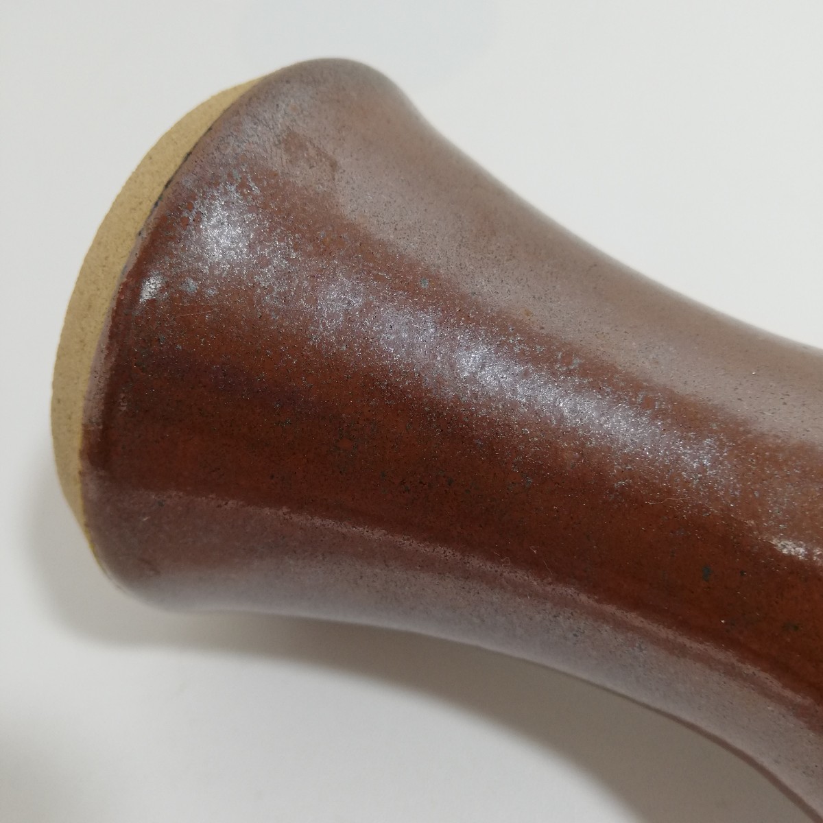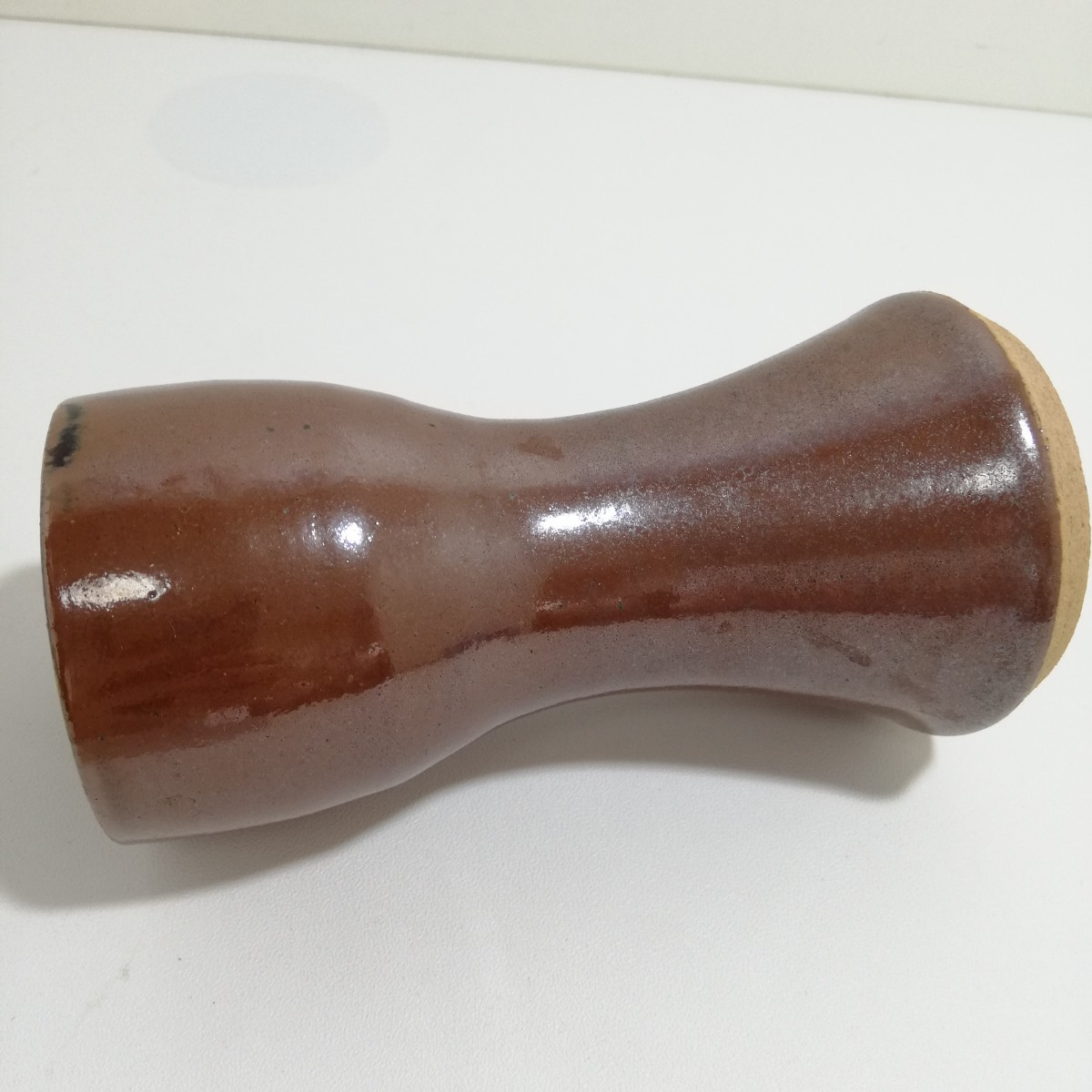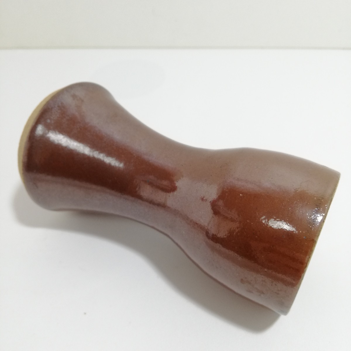 益子焼 柿釉高台猪口 高さ12.7cm 未使用品 [ぐい呑み 酒器 益子 足付猪口 馬上杯]です。