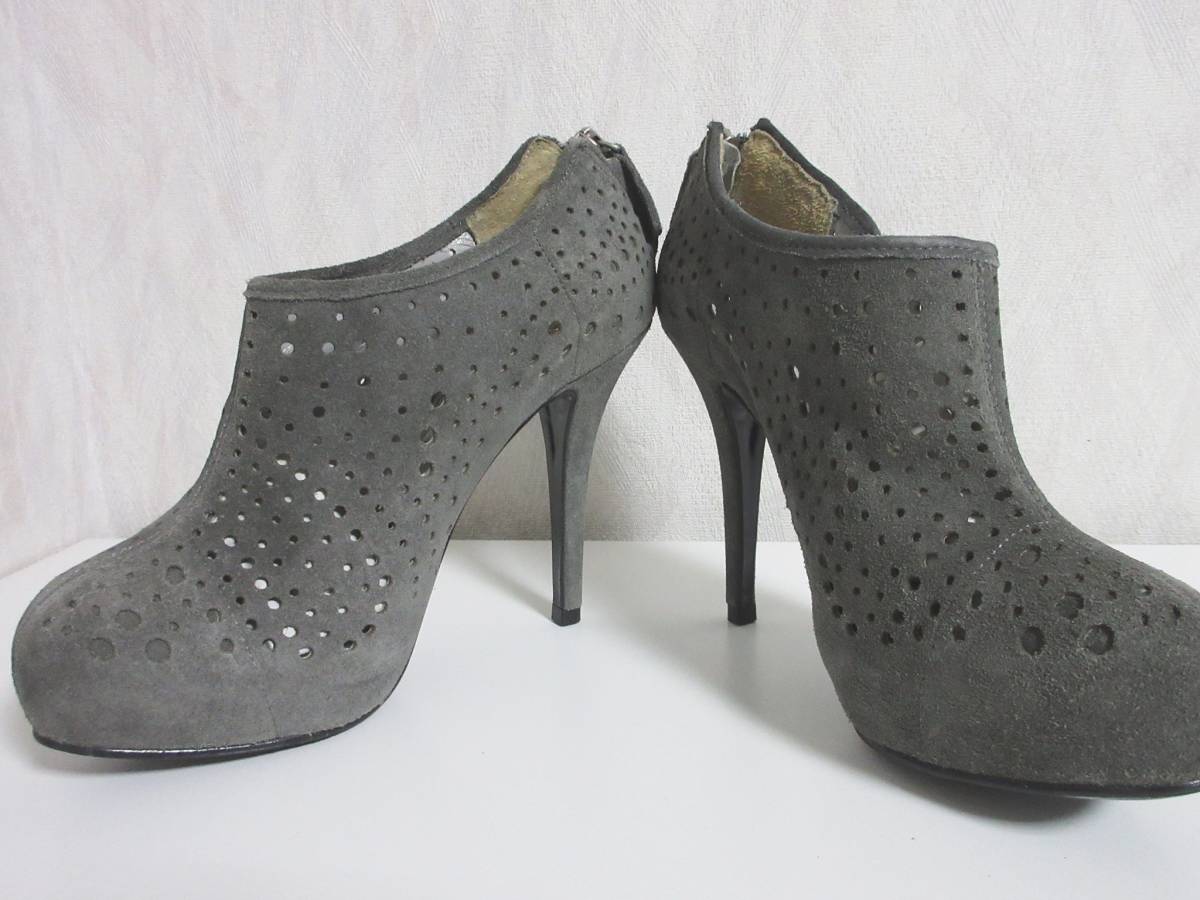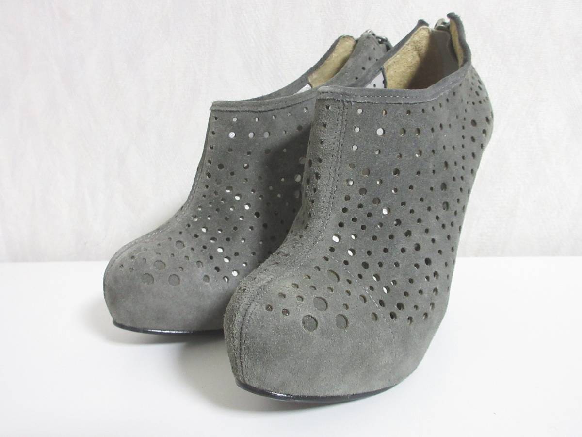 ワーナー WERNER パンチング スエードレザー ブーティー グレー系 36 北6202