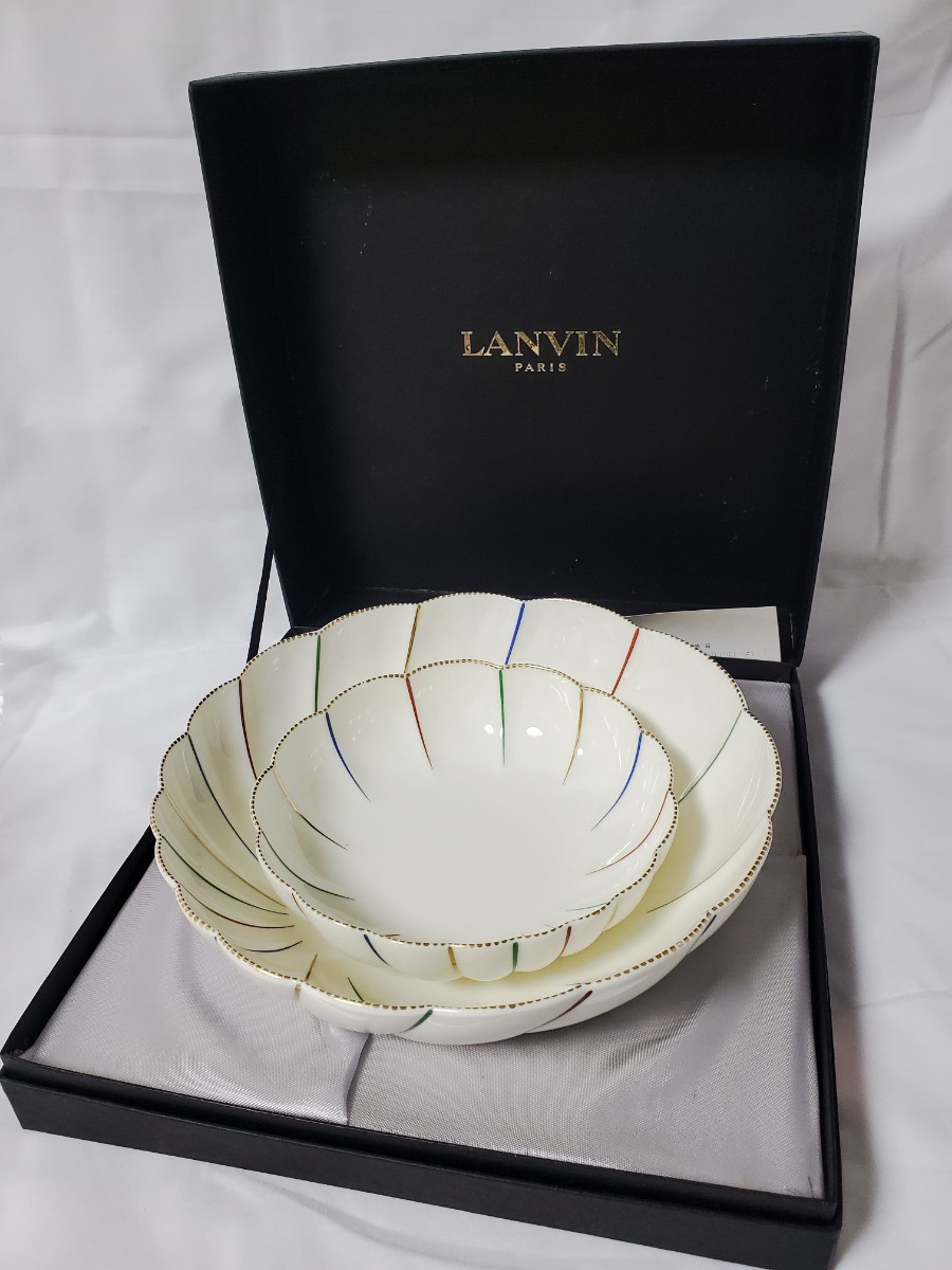 [未使用] LANVIN ランバン 23㎝ 丸大鉢 16㎝ 丸中鉢2点まとめて 皿 食器 インテリア 箱付き★02K-32の出品になります。