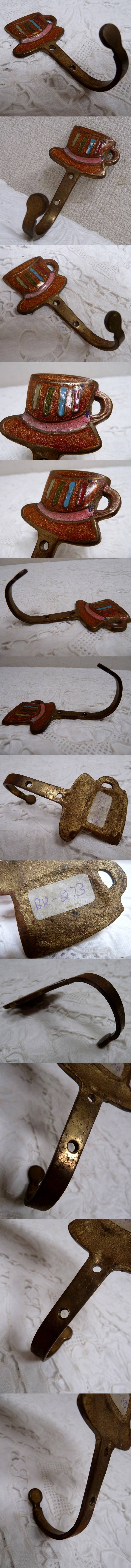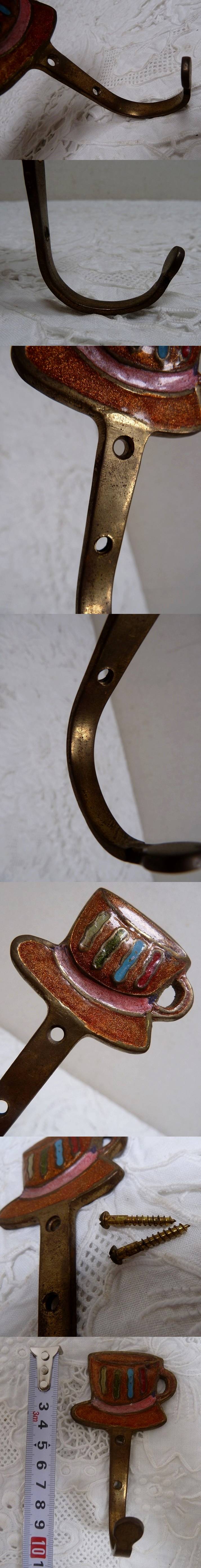 (☆BM)真鍮製 アンティーク ハンガーフック コーヒーカップ カフェ レトロ ヴィンテージ調 全長10㎝ 金属製 壁付け バッグ 帽子 コート