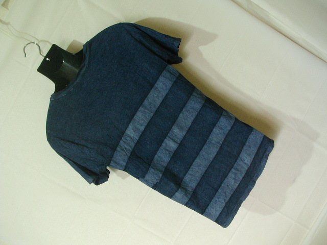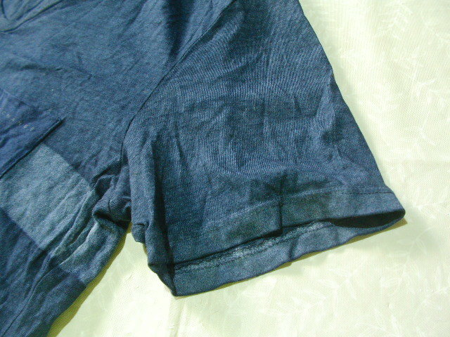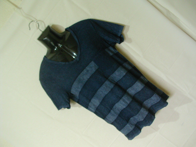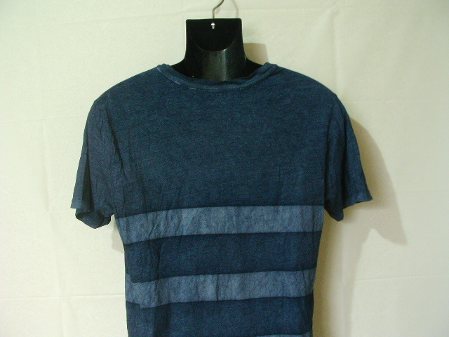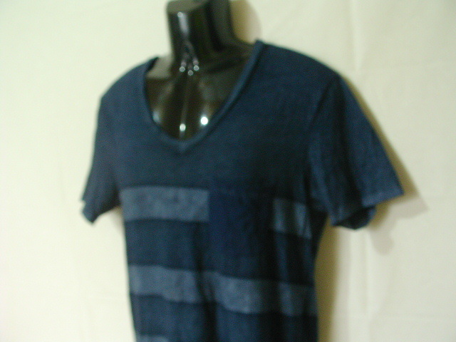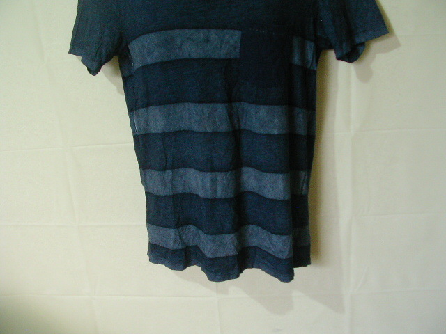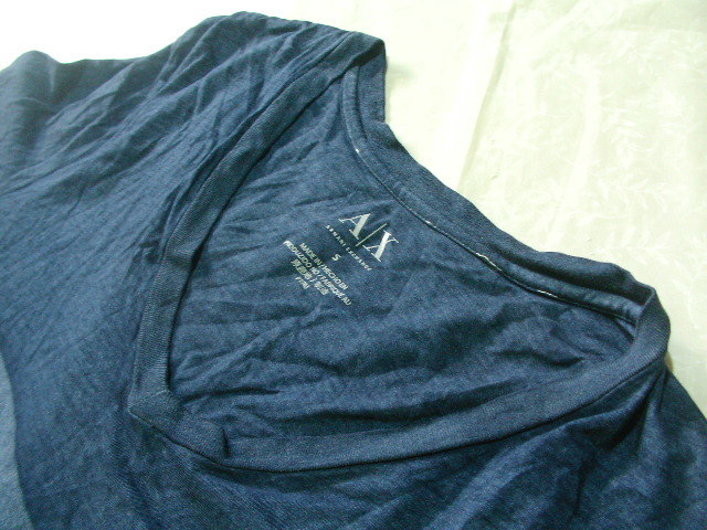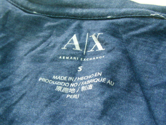 ssy7103 A/X ARMANI EXCHANGE 半袖 Tシャツ カットソー ネイビー系 ■ Vネック ■ ボーダー柄 胸ポケット ロゴプリント Sサイズ