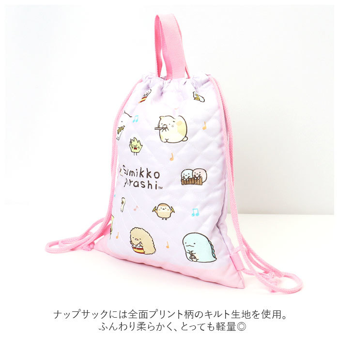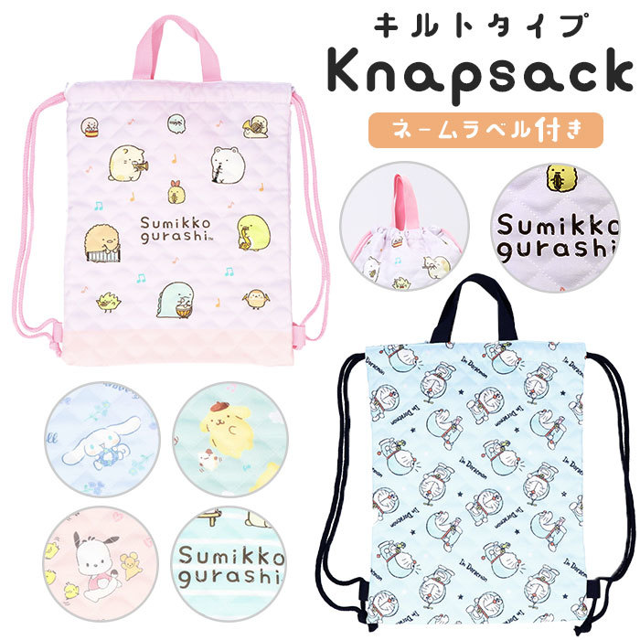 | 商品説明 | ・・体操着入れやお道具入れにピッタリなキルトタイプのナップサックが登場。 ・ナップサックには全面プリント柄のキルト生地を使用。ふんわり柔らかく、とっても軽量◎ ・サイドの巾着紐をキュッと絞るだけでラクラク開閉◎ ・持ち手が付いているから、手提げとしても使用OK。 ・持ち手は長さの異なる2種類を装備。短い持ち手(内側)を使って机の横に掛ければ、床につきにくいのも嬉しいポイント。 ・紐の結び目の位置を変えることで長さ調節が可能。お子様の成長に合わせて使えるのがうれしい♪ ・紐を長めにすると、ランドセルの上からも背負えて便利! ・汚れが気になったら手洗いOK。 ・アイロンで付けられるネームラベル付き。 ・お子さまに人気のキャラクターデザインをラインナップ★ ・入園・入学準備にもおすすめ。 |