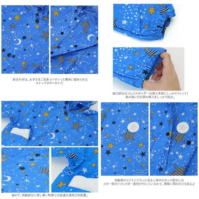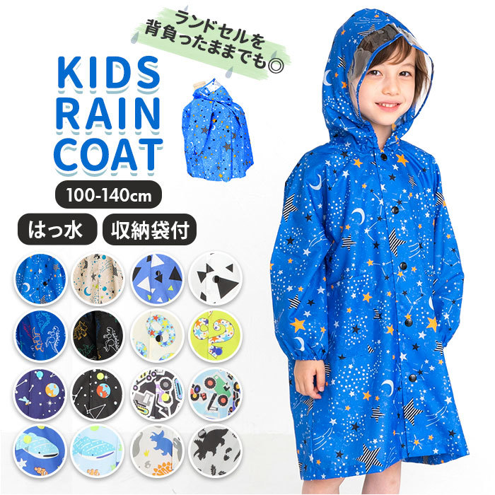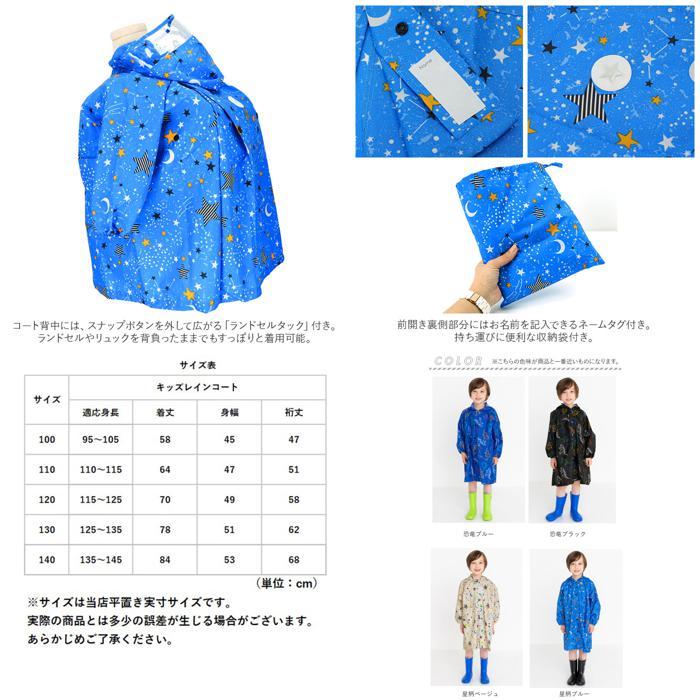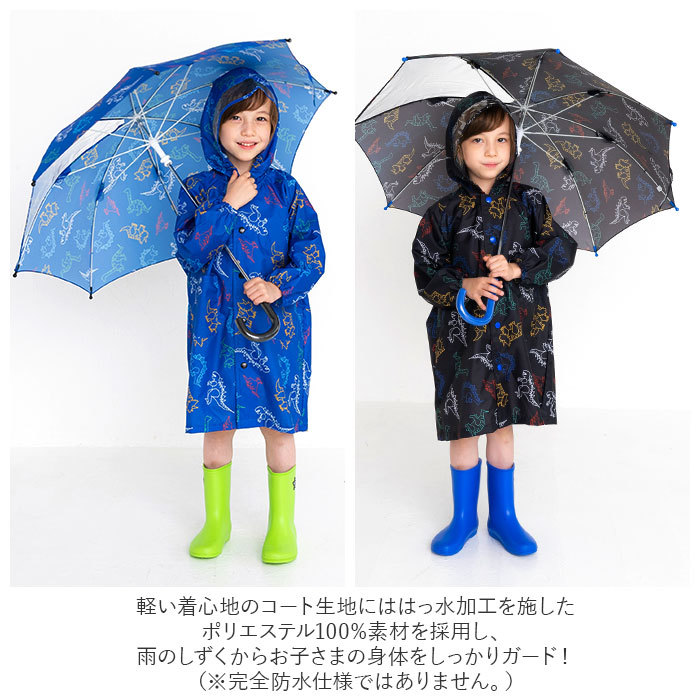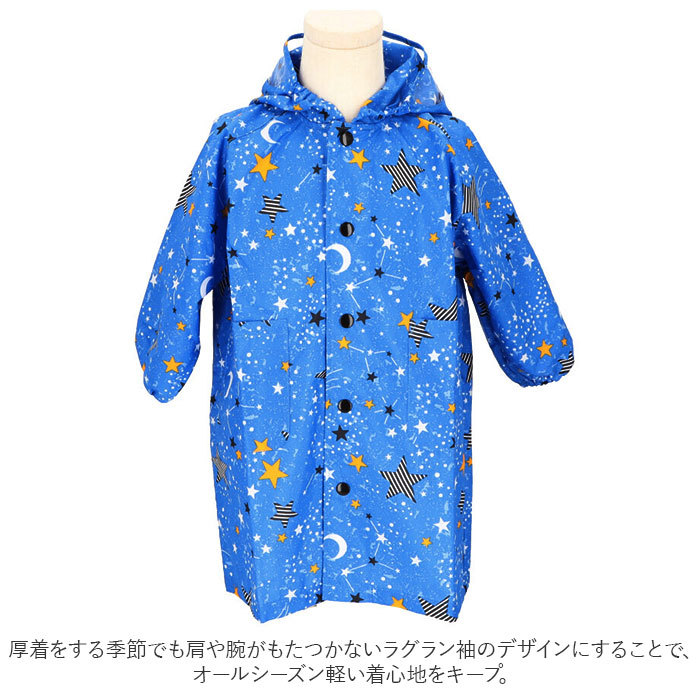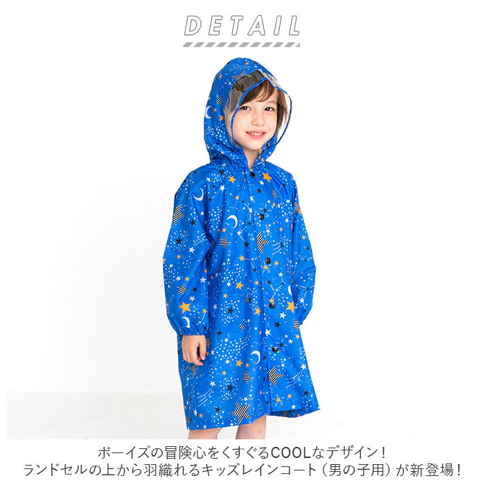 商品説明 | ・・ボーイズの冒険心をくすぐるCOOLなデザイン!ランドセルの上から羽織れるキッズレインコート(男の子用)が新登場! ・軽い着心地のコート生地にははっ水加工を施したポリエステル100%素材を採用し、雨のしずくからお子さまの身体をしっかりガード!(※完全防水仕様ではありません。) ・フードのひさし部分に広めの透明窓をデザインし、前方・左右まで視野が妨げられない安心設計。 ・コート背中には、スナップボタンを外して広がる「ランドセルタック」付き。ランドセルやリュックを背負ったままでもすっぽりと着用可能。 ・自動車のライトにピカッと光る☆背中のタック部分にはスター型のリフレクター素材が付いているので、薄暗い雨の日でも安心♪ ・前合わせは、お子さまご自身でパチンッと簡単に留められるスナップボタンタイプ。 ・袖口部分はゴム入りギャザー仕様で手首にしっかりフィット!風の強い日も雨の侵入をしっかり防止。 ・袖の下、両脇部分に蒸し暑い時期でも快適な通気口を配置。さらに、厚着をする季節でも肩や腕がもたつかないラグラン袖のデザインにすることで、オールシーズン軽い着心地をキープ。 ・前開き裏側部分にはお名前を記入できるネームタグ付き。お友達とお揃いでもコートを取り違える心配のない嬉しい仕様。 ・ワイルドな恐竜に宇宙に広がる星座など、男の子の夢を生地いっぱいに散りばめたコートで、雨の日も元気にお出掛け♪持ち運びに便利な収納袋付き。 |