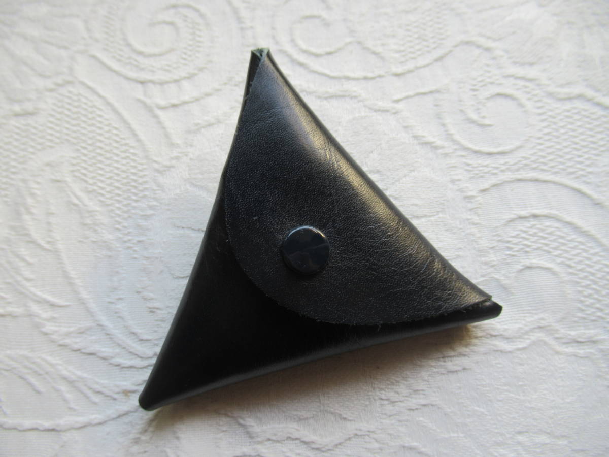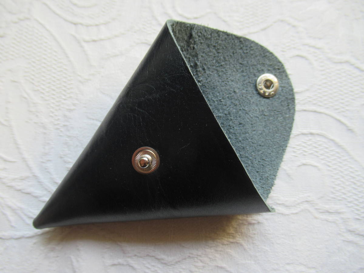 手作り 本革製三角財布 コインケース 小銭入れ 濃紺