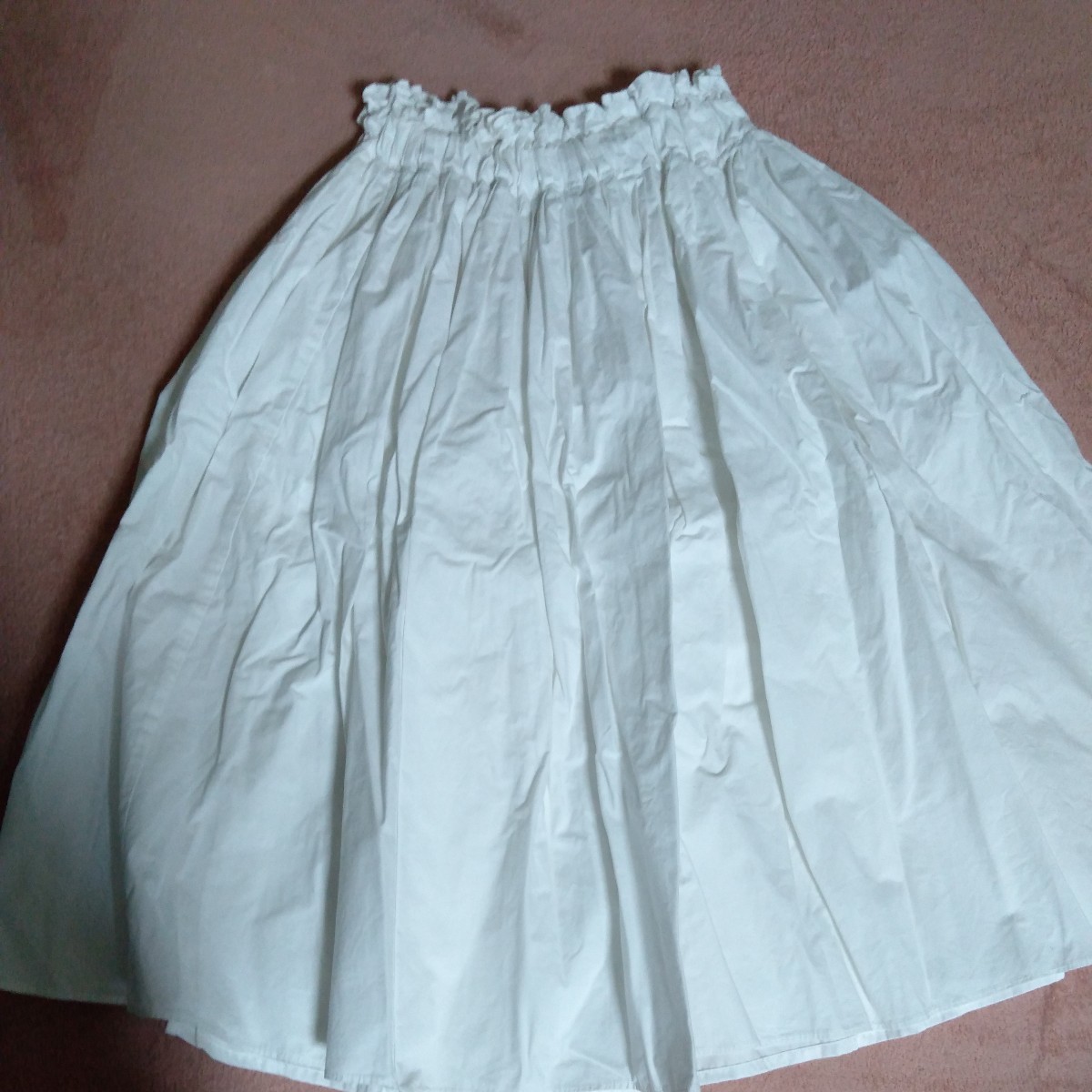 3回ほど着用しました。見たところ特に汚れ等はないように見えますが、白ですので見落としがあるかもしれません。サイズ表記は38、ウエストはゴムで30cm着丈72cm。