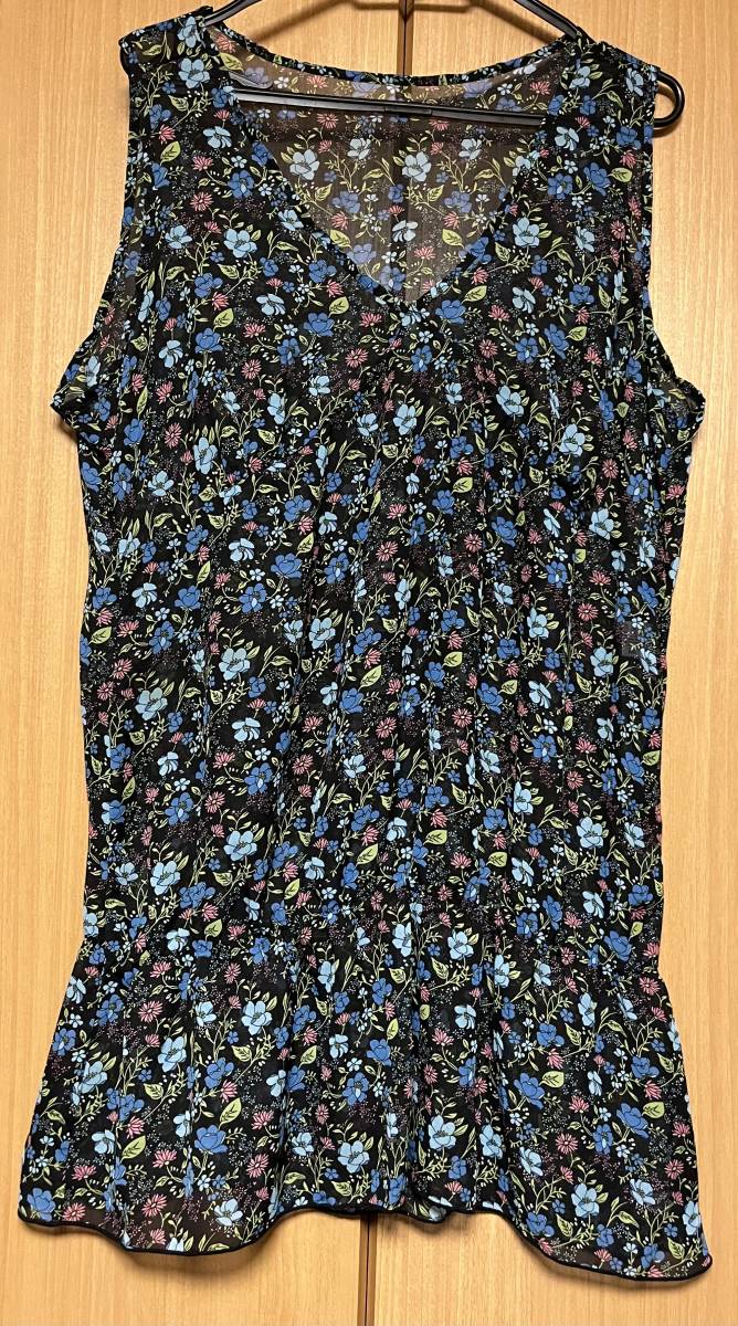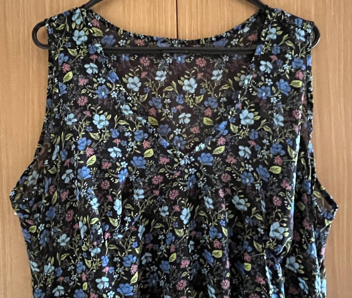 *ブルー系やピンク系の花柄がキレイなノースリチュニック*3L