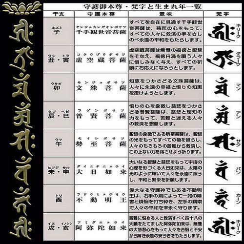 | 【 天然石 パワーストーン アクセサリー ファッション 雑貨 】 ◆酉年☆不動明王 ☆梵字:カーン 煩悩を断ち切り幸福へと導いてくれます。 厄除け、災難除去、開運吉祥、勝負必勝、立身出世の功徳があると言われます。 ◆申・未年☆大日如来 ☆梵字:バン 永遠の繁栄と心の平安をもたらしてくれます。霊徳授与、無病息災、福徳長寿、和合円満、繁栄発展の功徳があると言われます。 ◆亥・子・戌年☆千手観世音菩薩 ☆梵字:キリーク 千の慈眼と慈手で一切の悩みを救い、願い事をすべて叶えて下さるという観音様です。また、聖観音の変化した姿で広大無限の慈悲を持ち、広範囲にわたって微細に人々を救うと言われていて、悩みを救い願いを全て叶えてくれると言う万能の神様です。 ◆午年☆勢至菩薩 ☆梵字:サク 知恵の光明により苦難を退け、迷いから救ってくれるでしょう。 知恵明瞭、現世安穏、福徳長寿、極楽往生の功徳があると言われます。 ◆丑・寅年☆ 虚空蔵菩薩☆梵字:タラーク 大いなる知恵を授け、願いを叶えてくれるでしょう。 知恵明瞭、学徳向上、記憶力増進、福徳円満、安産、罪障消滅、除病息災の功徳があります。 ◆辰・巳年☆普賢菩薩 ☆梵字:アン 文珠菩薩と共に釈迦如来の脇士として白象に乗った菩薩です。信仰を司どり災難回避、長寿のご利益があります。息災延命、福徳授与、女性守護の功徳があると言われます。 ◆卯年☆文珠菩薩 ☆梵字:マン 知恵の仏として学業の功徳が顕著。苦労や災難を五智の剣で断ち・幸福を招く。 【注意】 ※同じ商品でも天然石の場合、色合い・模様・形などが異なることがあります。サイズに多少の違いが出る場合がございます、 ※照明の具合で実際とは色合いが異なる場合があります。 | |