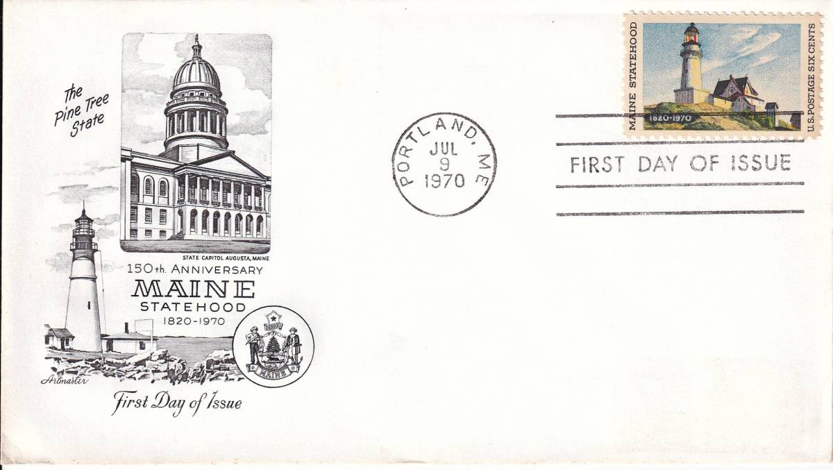 【FDC】メイン州150年・灯台(3)(1970年)(アメリカ) t3873