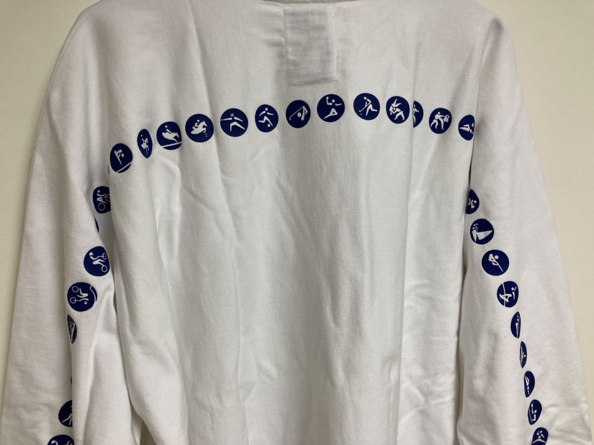 バックに東京五輪の競技のピクトグラムがプリントされています。