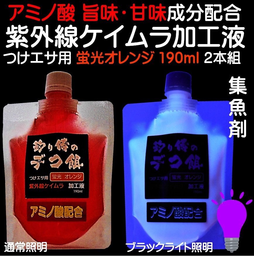 つけエサ用 アミノ酸の旨味成分・甘味成分最強配合 紫外線 蛍光発光 ケイムラ 加工液 190ml 同色2個組