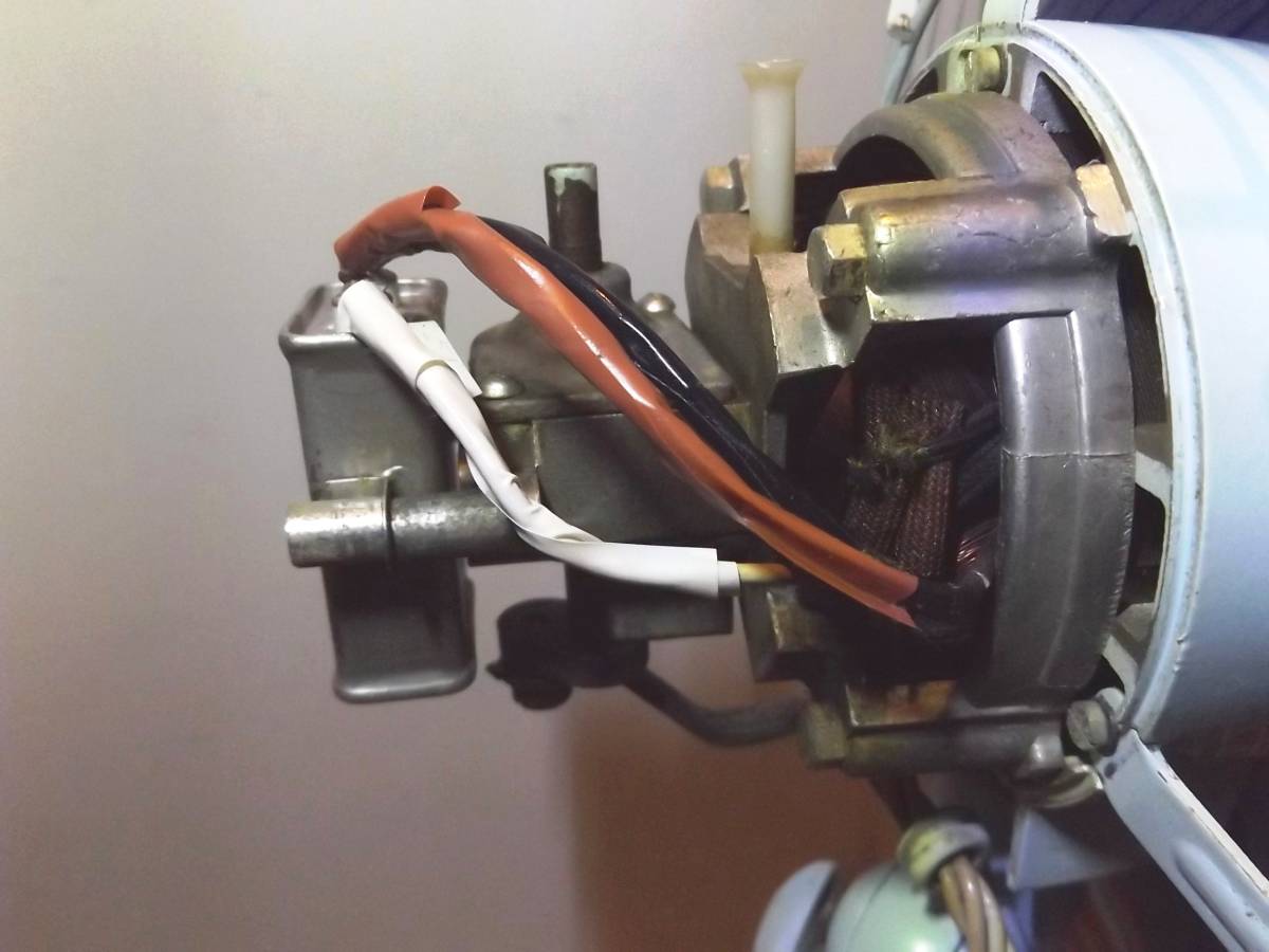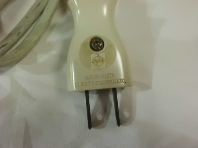 ★ | 商品状態 | ボタン3は弱めの微風、ボタン2は弱風、ボタン1は強めの風といった感じで、最近の強風が出るようなサーキュレーターと比較すると少々物足りなさを感じるかもしれませんが、首振り機能ともに全てのボタン操作は可能です。 長年に渡り保管時にコードを巻きつけていたせいで、写真の様なプラスチック部分に溶けた様な?汚れが有りましたが、市販のネイル磨きで半日掛けて磨いたところ、かなり目立たなくなったと思いますが、完全に取れた訳ではないので、ご理解願います。 出品に際し親類の電気屋さんで分解清掃してもらったところ、内部配線の被覆の硬化が見られたらしく、写真の様に絶縁テープを巻いてある箇所があります。 また、金属部分の多少のサビやクスミ、年代相応の使用感に伴うキズや汚れなどは見られますが、超レトロ家電としては比較的良好な状態だと思います。 ただ、写真の通りコンセントのプラグが、これまた超レトロなナショナルのプラグに交換されていますの、ご了承のうえで入札してください。 照明の中の電球は何度か交換されていると思いますが、本体に関してはモーターや羽根など故障したことが無いらしく、当時のままのフルオリジナルだそうです。 但し、現状では動作しておりますが、今後の動作を保証するものでは有りませんので、ご了承願います。 その他、気が付かなかった汚れやキズなど見落としがある場合がありますが、ご理解をお願いします。 |