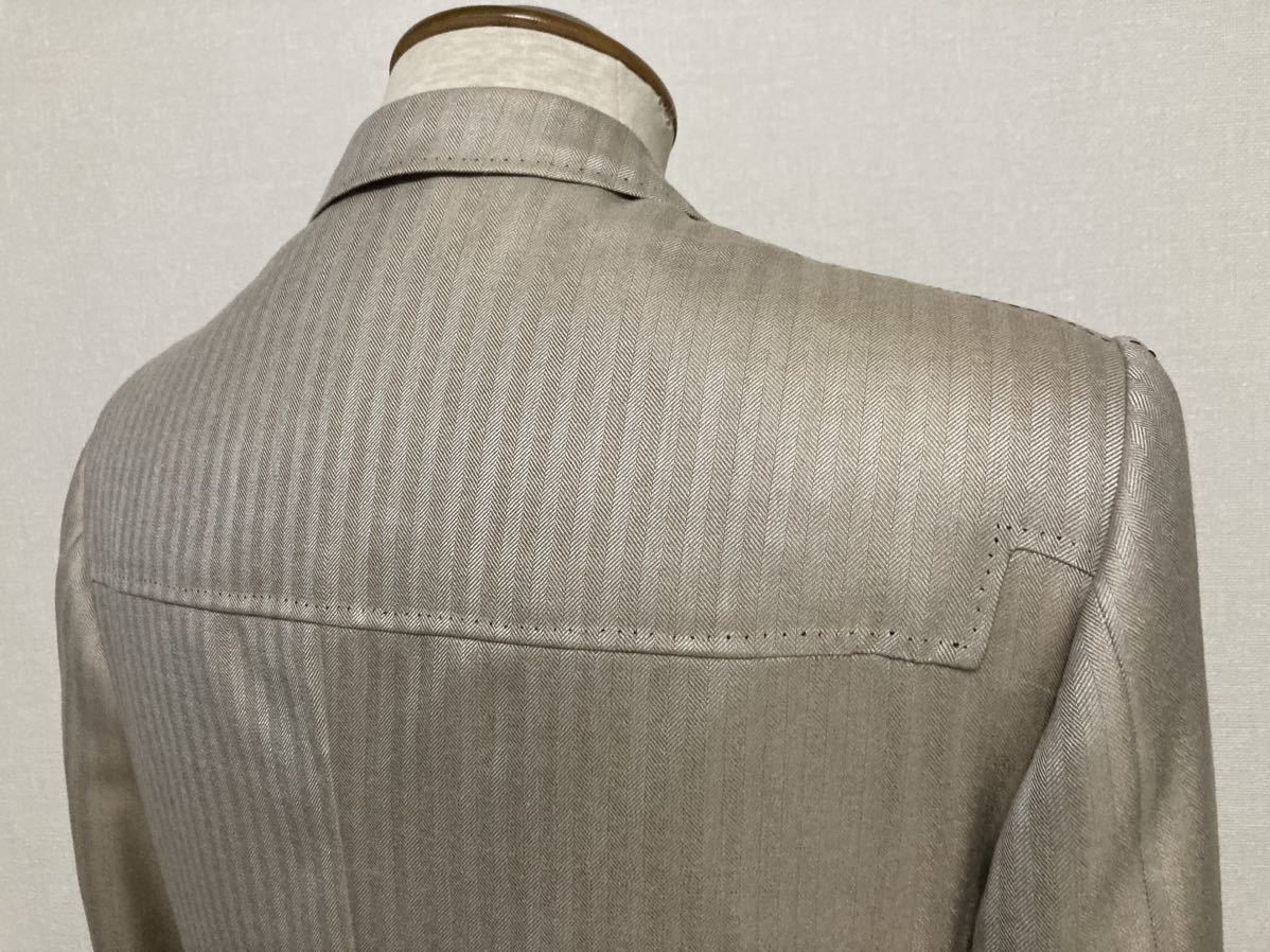 細部以外にも袖付けもハンドとアイロンワークを巧みに使いながら立体的に動きやすく仕上げてあります。