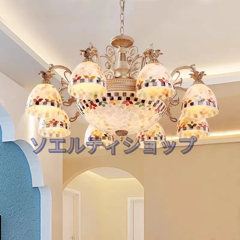 新入荷☆極美品☆欧米風 ペンダントライト 豪華天井照明ステンドグラスランプ ガラス工芸品 8灯