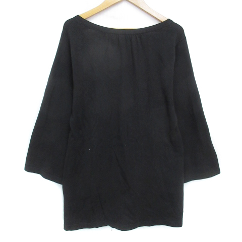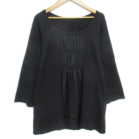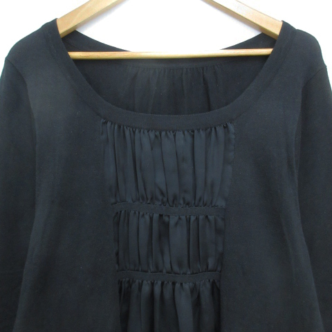 インディヴィ INDIVI チュニック カットソー 長袖 ラウンドネック 切替 無地 38 黒 ブラック /FF20 レディース