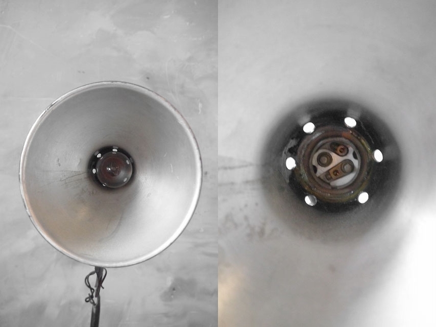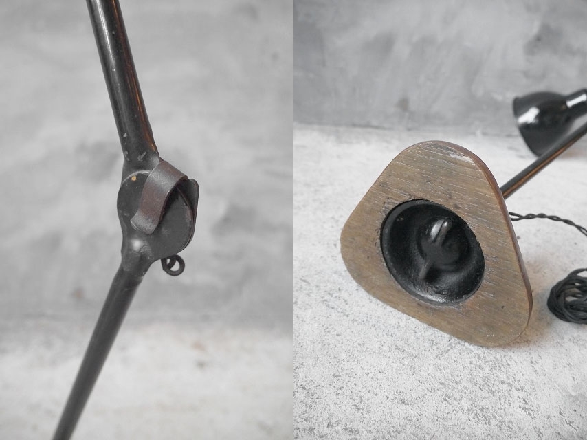 商品説明 岡山STAGEから出品します。フランスで買い付けましたアンティークのGRAS RAVEL デスクランプです。1921年にフランスのデザイナーベルナール アルバン グラがアトリエやオフィス向けに設計し、基本構造にネジや溶接を一切使用しない独自の構造を備えているランプです。オリジナル塗装で経年風化によるメタルとペイントの風合いが非常に雰囲気良くシェードはかっこいいです。シェードやアームの角度調節が可能で多用途にご使用いただけます。コード、コンセントプラグは交換されております。電球は付属しませんがB22口径タイプになりますのでご用意ください。お部屋やショップ等の実用兼ディスプレイとしておすすめです。状態ですが、経年による木質・金属特有の劣化、錆、小傷や擦れ、汚れ、打痕跡、塗装剥がれ等の使用感はありますが使用に差し支えがでるような目立つダメージもなく問題ない状態かと思います。ただあくまでアンティークになりますのでご理解いただける方のご購入をお願いします。 サイズ 一枚目の状態で、高さ約62.5cm、シェード直径約14.5cm、土台約16.5×16.5cmになります。 発送方法 保障の利く佐川急便の元払い140cmサイズ料金で行います。 コメント 店頭でも販売しております。タッチの差で売り切れた場合はご了承下さい。よろしくお願いします。 STAGEホームページ https://www.stage-stage.com/ |