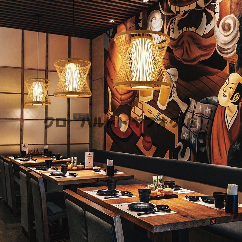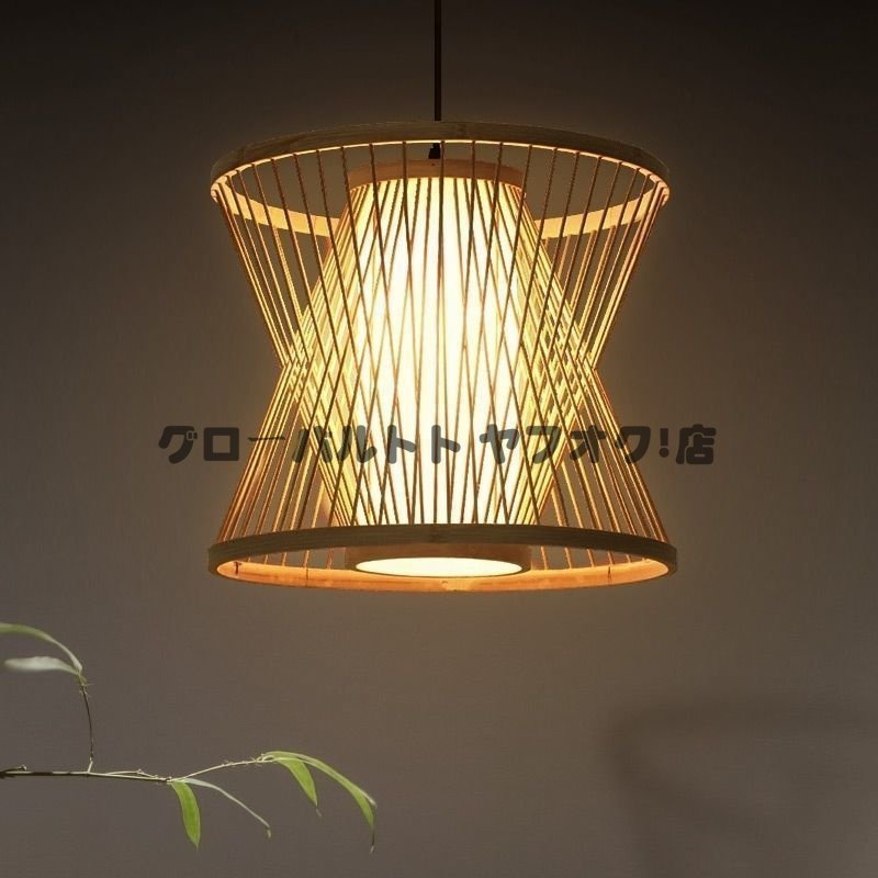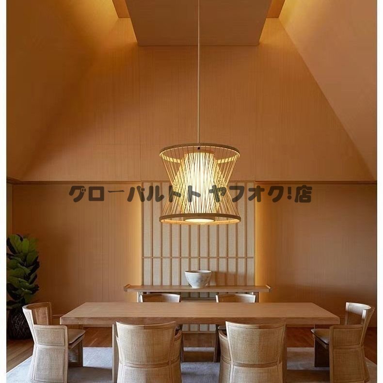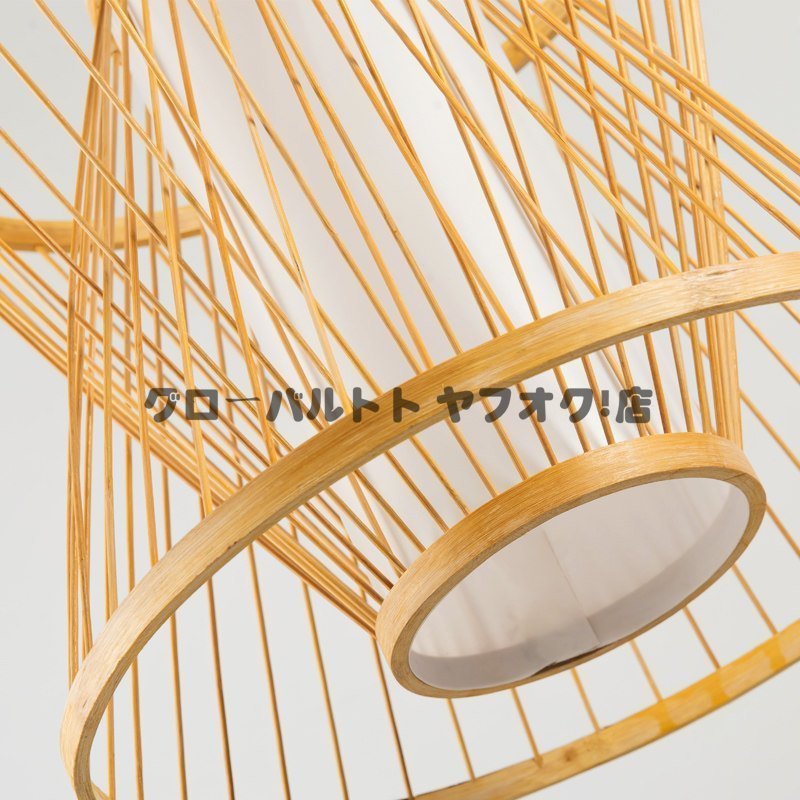 実用★ ペンダントライトファンネルスタイル 竹製シャンデリア手編みランプ 天然素材製 レストラン/居間用シャンデリア照明 装飾品 s9