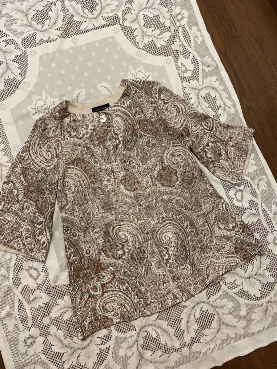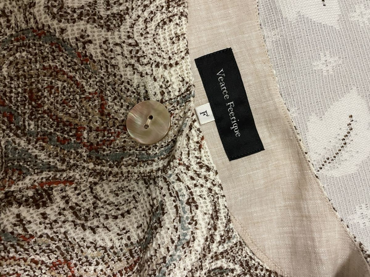 ・ブランド名:Vearce Feerique ・サイズ:F ・素材:麻88% 綿12% 別布〜麻100% ・平置実寸:身幅53.5【後ろ側】 肩幅45.5 袖丈43.5 着丈74 <素人採寸ですので多少の誤差はお許しください> ・USED-超美品。1回の着用です ・めだった汚れシミは無い様に思います ・袖口、ネック部分、前合わせ部分のみ別布があります ・前合わせはボタンが1つです ※汚れシミなど出来る限りチェックしておりますが万一見落とし等ございましたらお許しください※ | |||