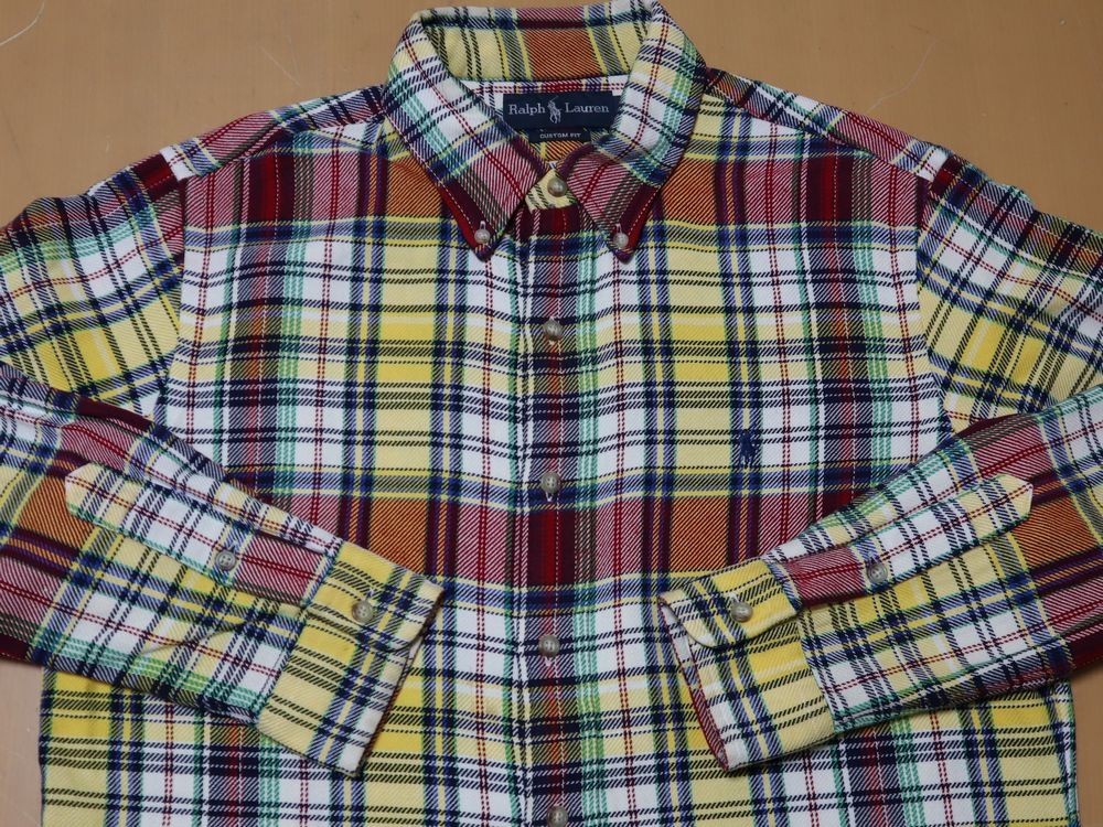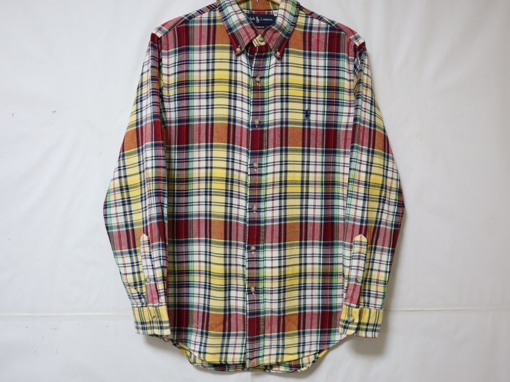 00s Y2K Ralph Lauren ポロ ラルフローレン ビンテージ チェック柄 コットン フランネル ネルシャツ ヘビーネル L サイズ 黄色 //
