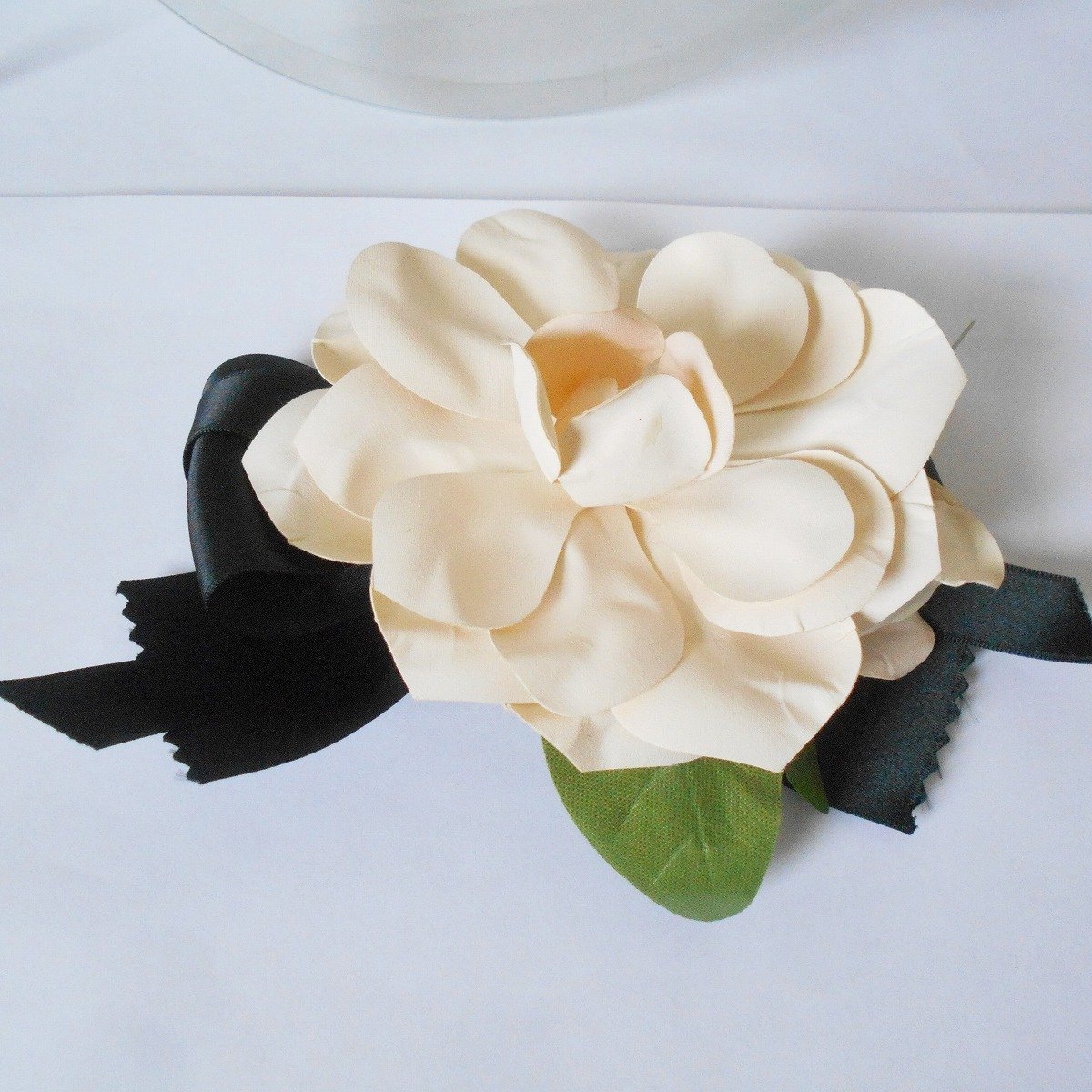 【ポイント】インゲボルグのコサージュになります。アイボリー系のお花で大型のお花とつぼみが1つございます。