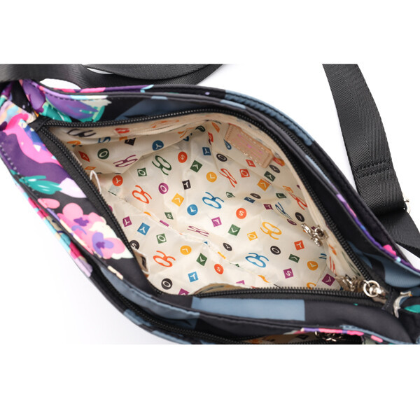 全面に鮮やかな花柄とモノグラムを施したカラフルなデザイン!裏地も華やかなサボイモノグラム柄。コンパクト軽量でマチあり、外ポケットが前後に付き、小物収納に便利なデザイン☆彡ファスナーチャームもロゴ型とハンドバッグ型で細部までおしゃれです。持つだけで、気分が上がりお出かけが楽しくなるアイテムです。旅行から普段使いまで幅広くお使いいただけます。
