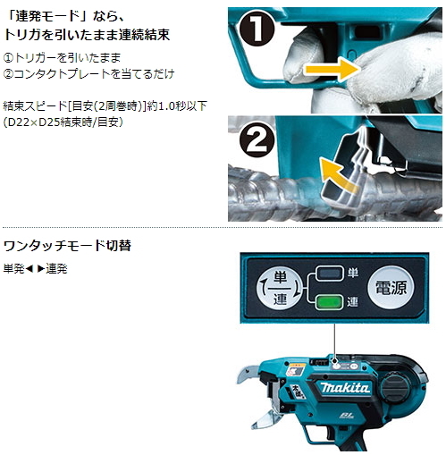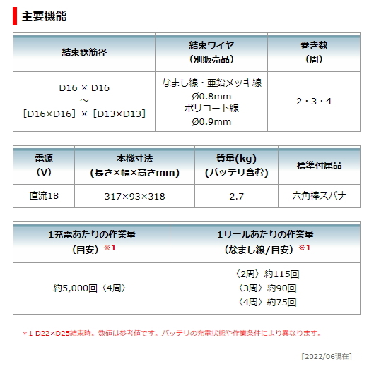 結束スピード[目安(2周巻時)]約1.0秒以下(D22×D25結束時/目安)