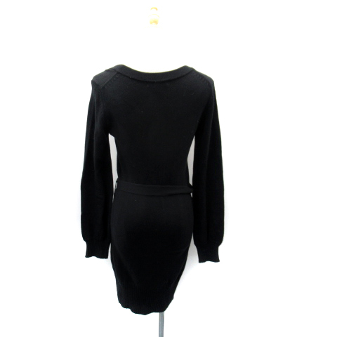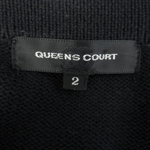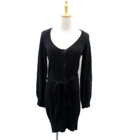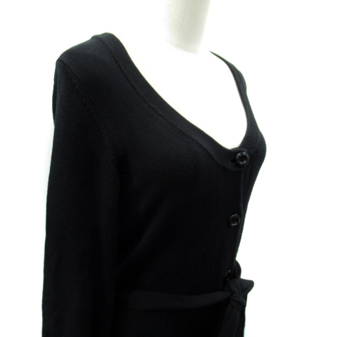 クイーンズコート QUEENS COURT ニットカーディガン ロング丈 ラウンドネック 無地 リボンベルト付 2 黒 ブラック /SY41 ■MO レディース