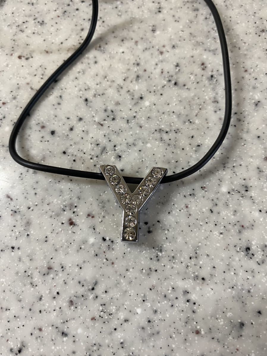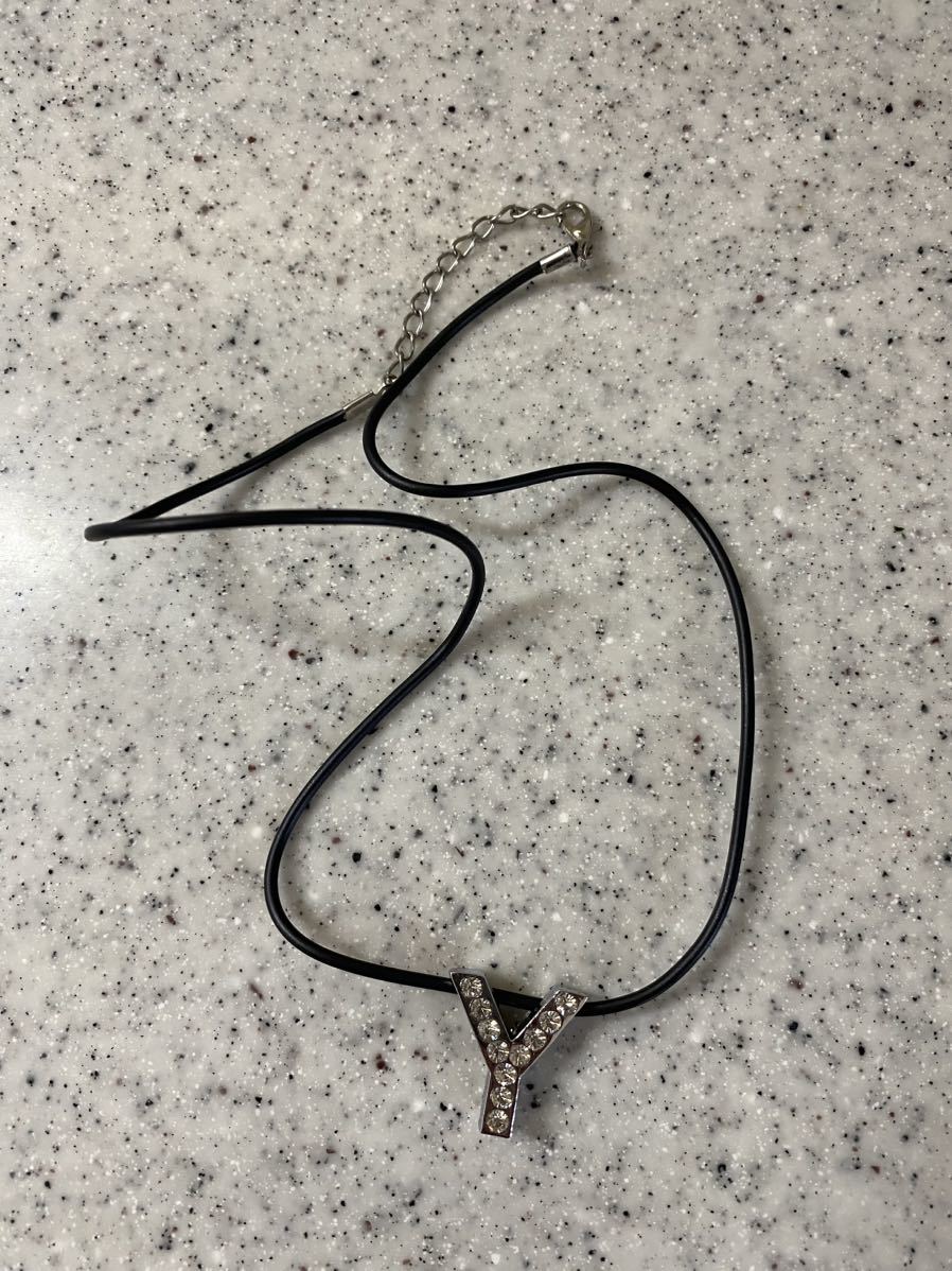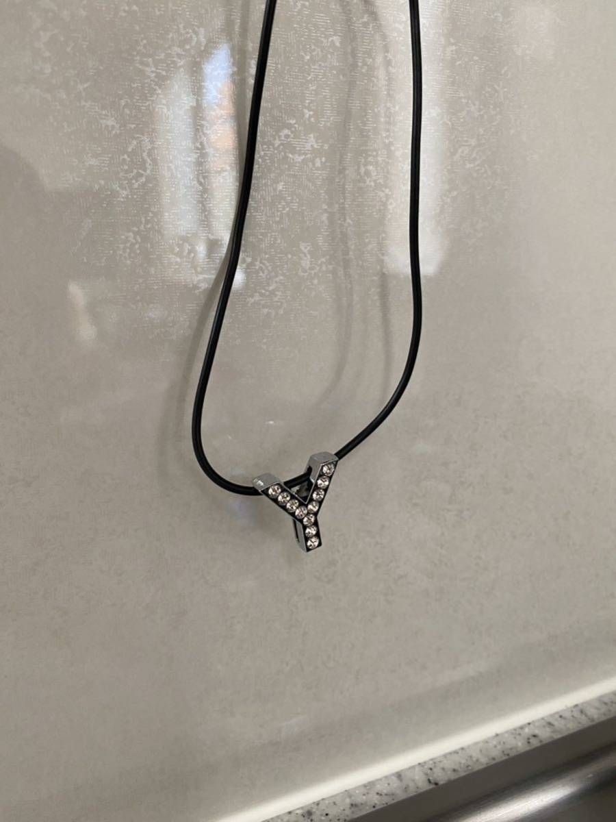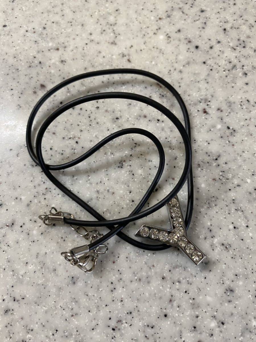 ラインストーン付きY字ペンダントトップ&黒紐ネックレス