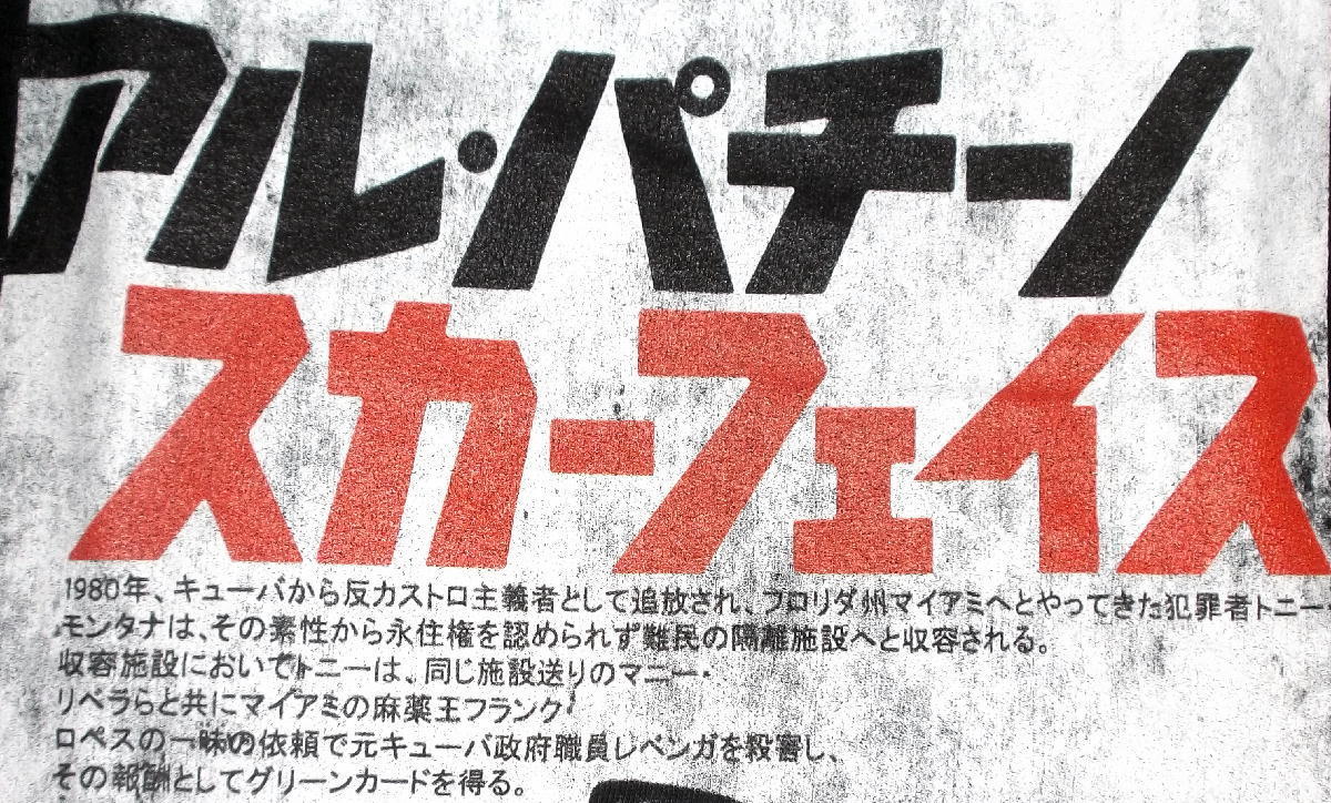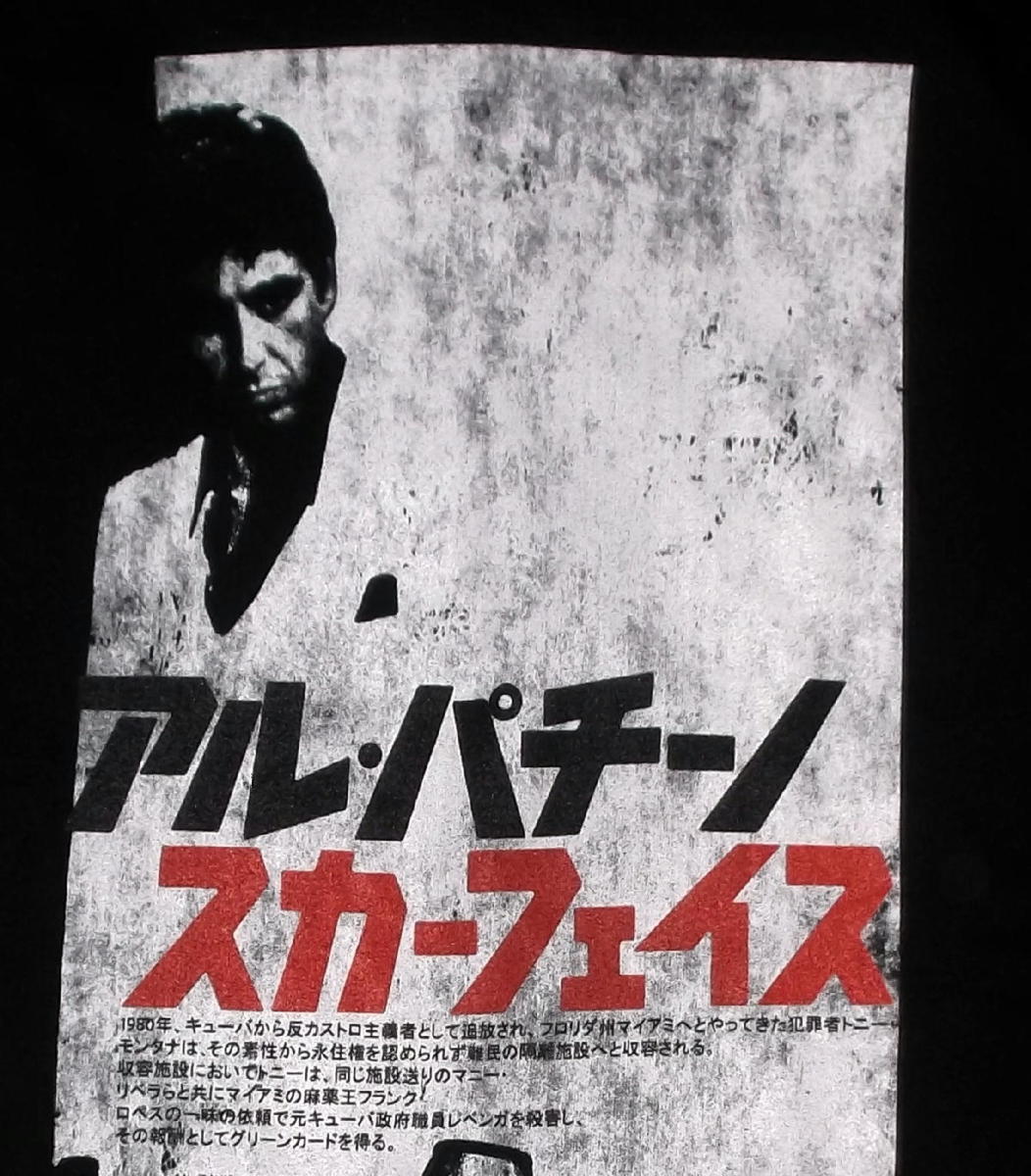 1932年のギャング映画『暗黒街の顔役』をベースとして制作された映画「スカーフェイス」のTシャツ「SMALL JPN T-SHIRT」です。