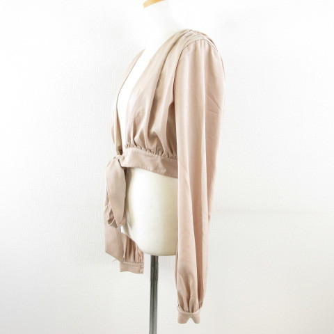 NBD カーディガン ブラウス ショート丈 長袖 ベージュ XS *A519 レディース
