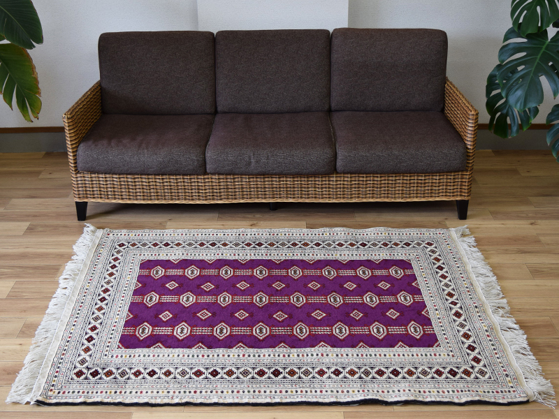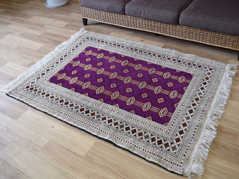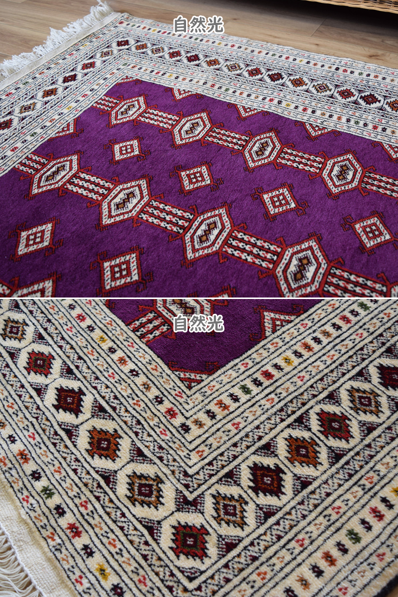 新品 ペルシャ 部族絨毯 トルクメン 150 x 116 cm No.P181 縦1.5m 横1.2m 2m2 ~1帖 ウール 手織り ラグ カーペット 紫