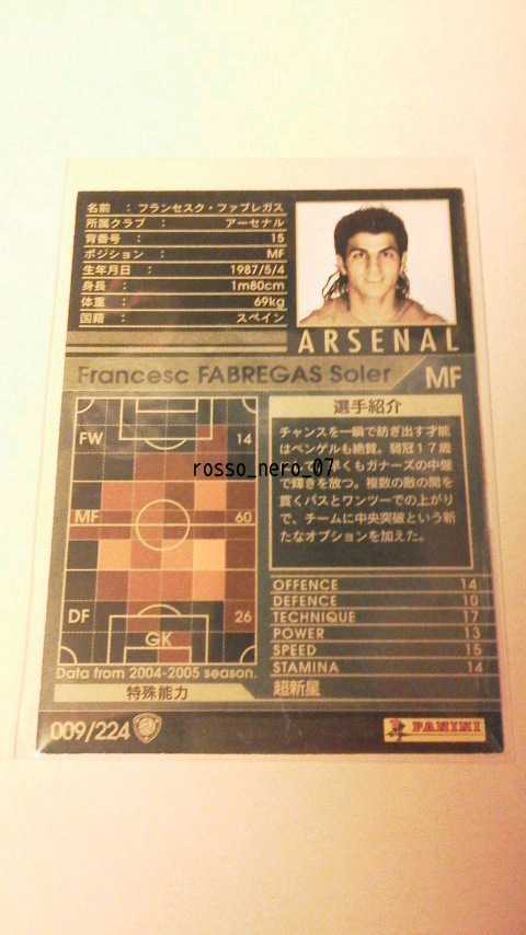 ☆WCCF2004-2005☆04-05☆009☆白☆フランセスク・ファブレガス☆アーセナル☆Francesc Fabregas Soler☆Arsenal☆