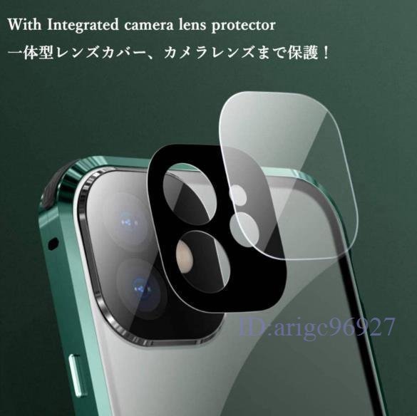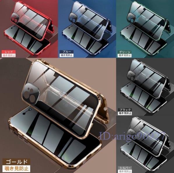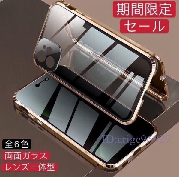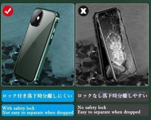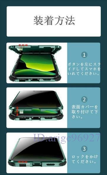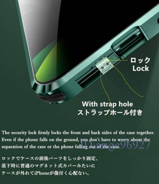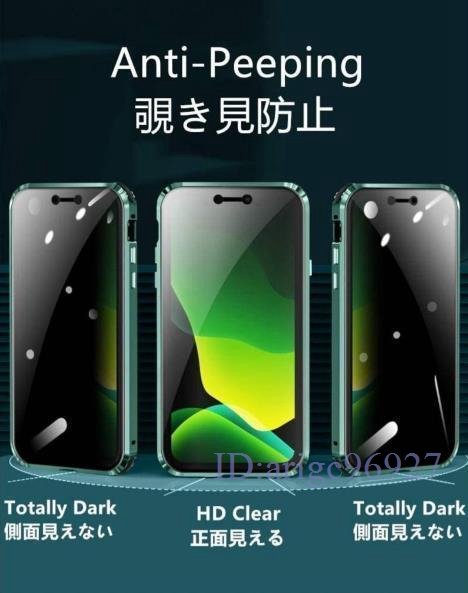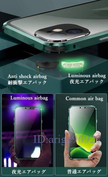 X673☆新品IPHONE 対応 ケース iPhone11/12/13/Pro/ProMax/Mini ケース 覗き見防止 両面ガラス ロック機能 夜光エアバック ブラック