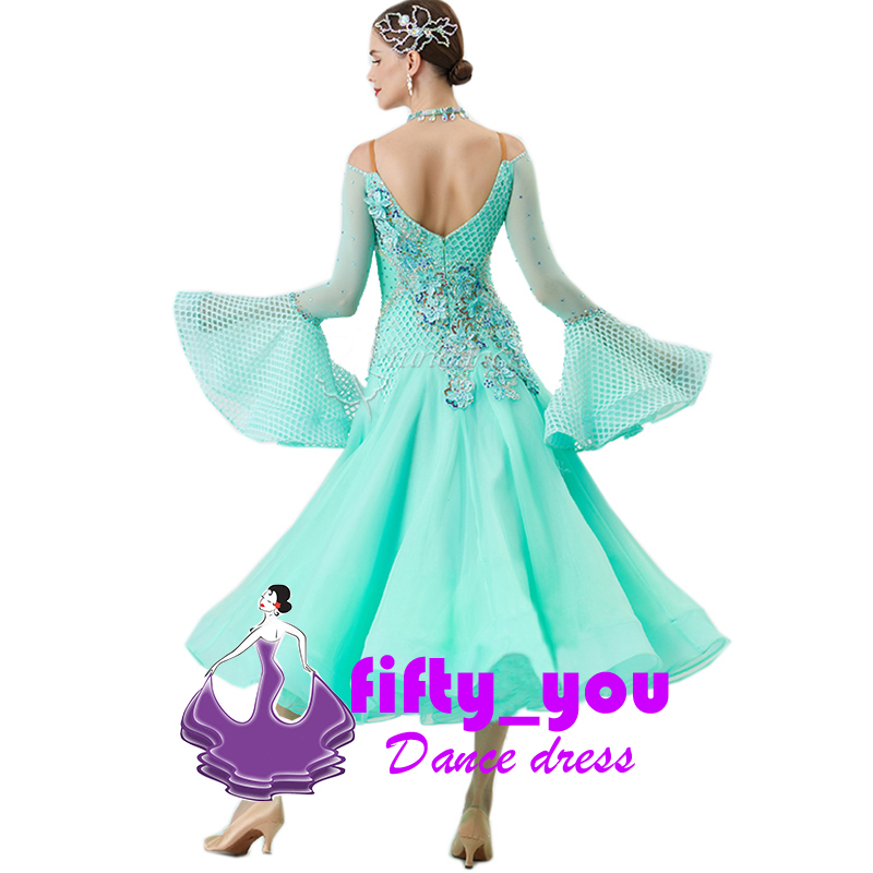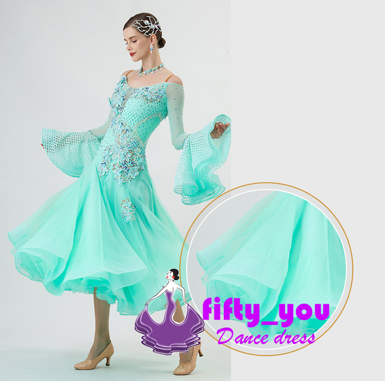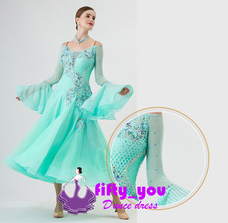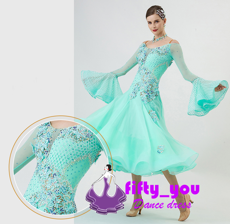 新品fifty_you 高級品 高品質ドレス レディース社交ダンス競技試合ドレス サイズセミオーダー モダンドレス 上品ワルツドレス ラッパー袖