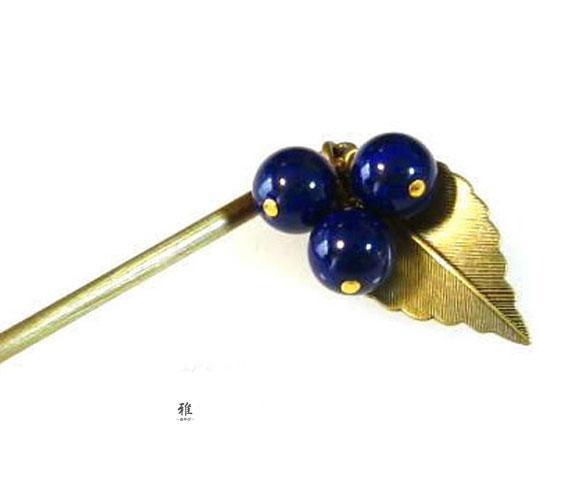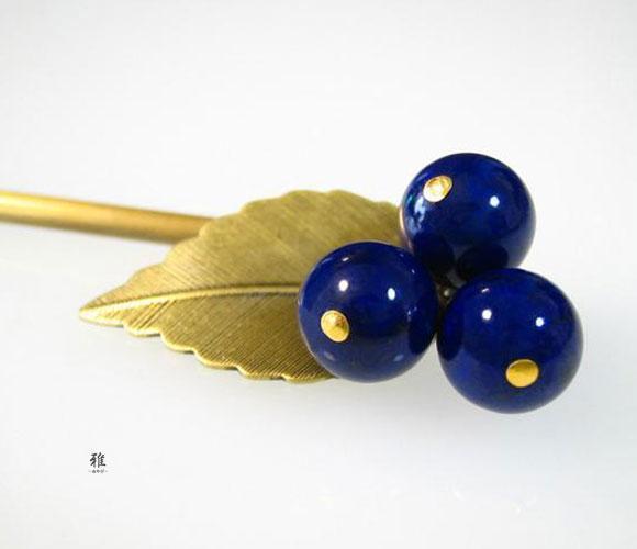 ラピスラズリ【グレード6A】で気品のかんざしをお作り致しました。(このグレードは入手不可)