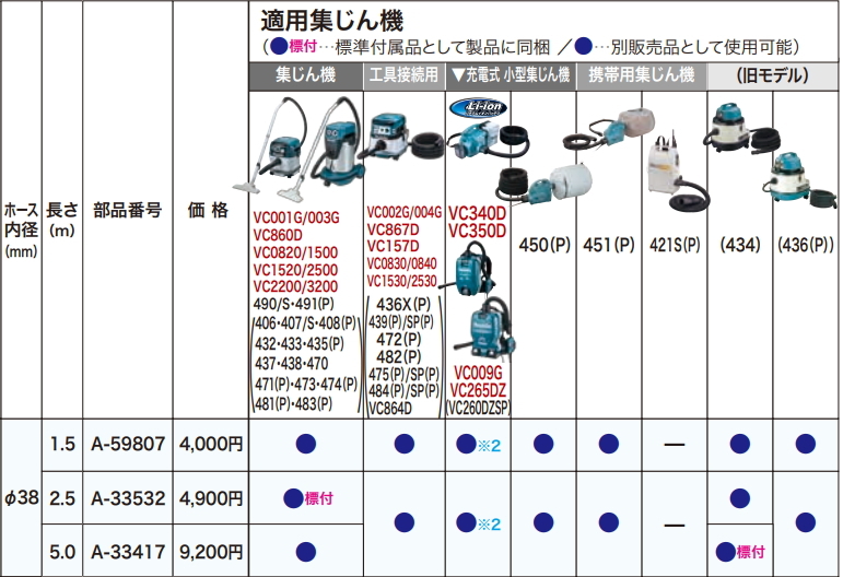 マキタ 集じん機用ホース Φ38 1.5m A-59807