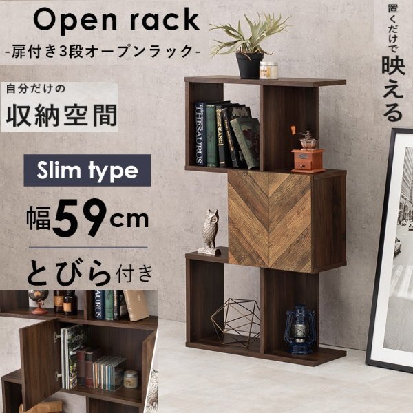 | タイトル | RCC-1014BR 扉付 3段オープンラック 横幅59cm ブラウン BR 置くだけで映える 間仕切り A4サイズ対応 横向き置ける 送料無料 |