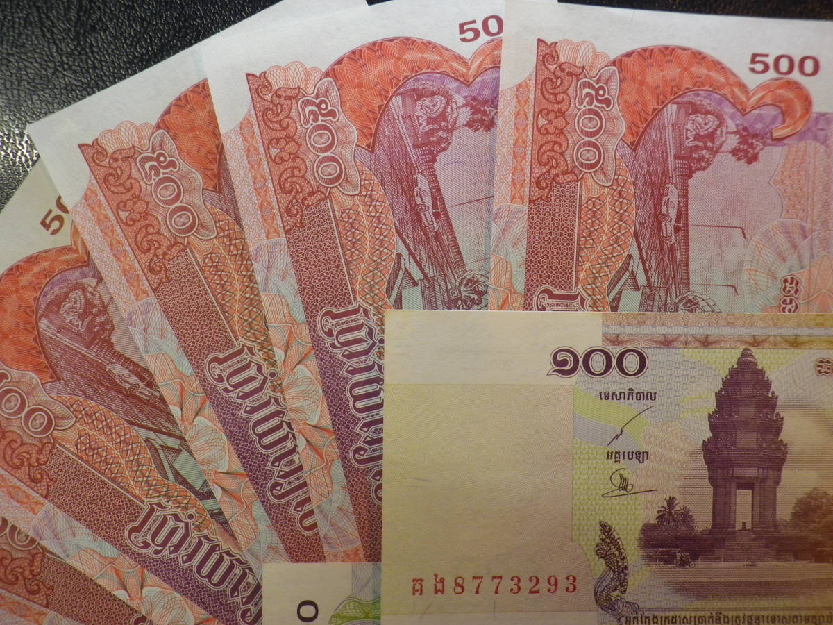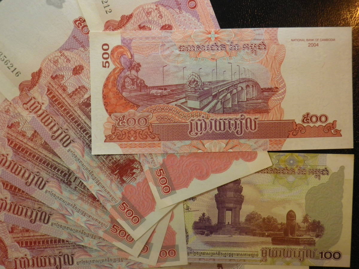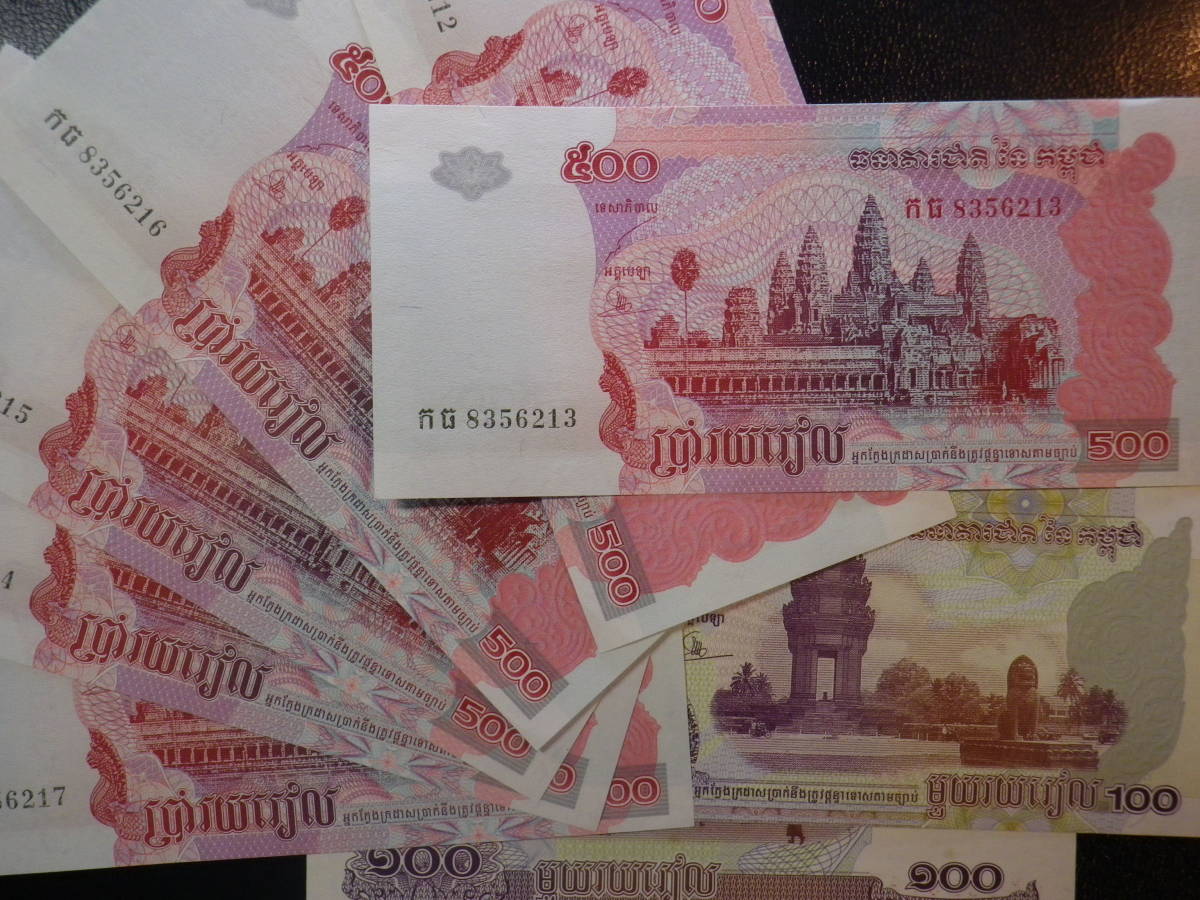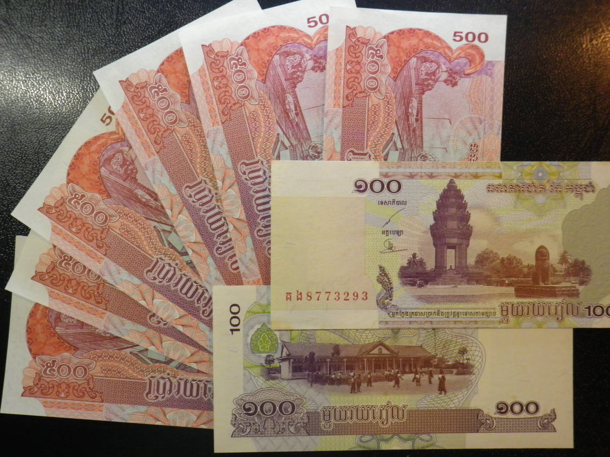 カンボジア 2004年 500R ×6枚 & 2001年 100R×2枚 準未使用~未使用