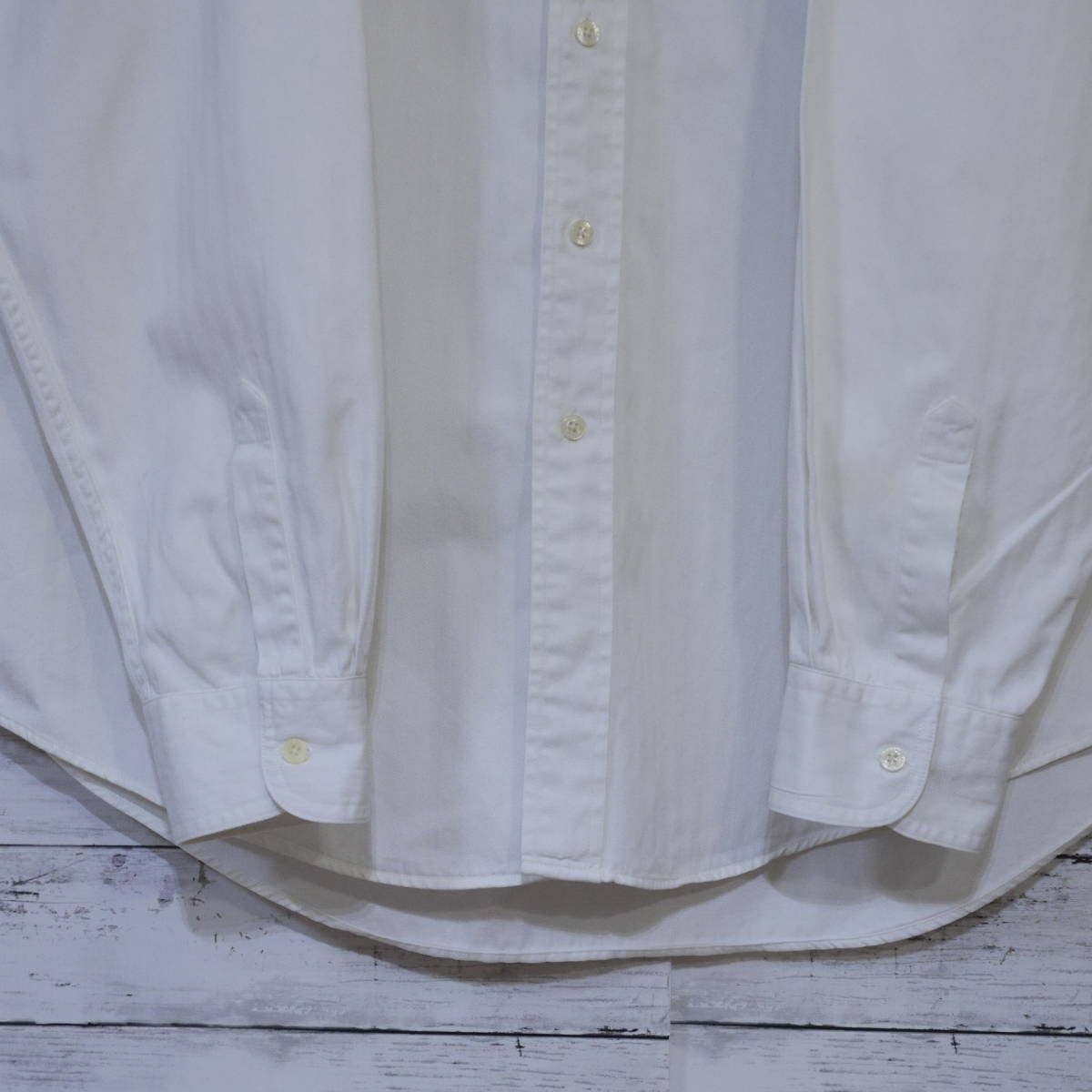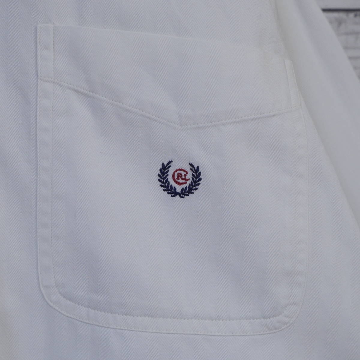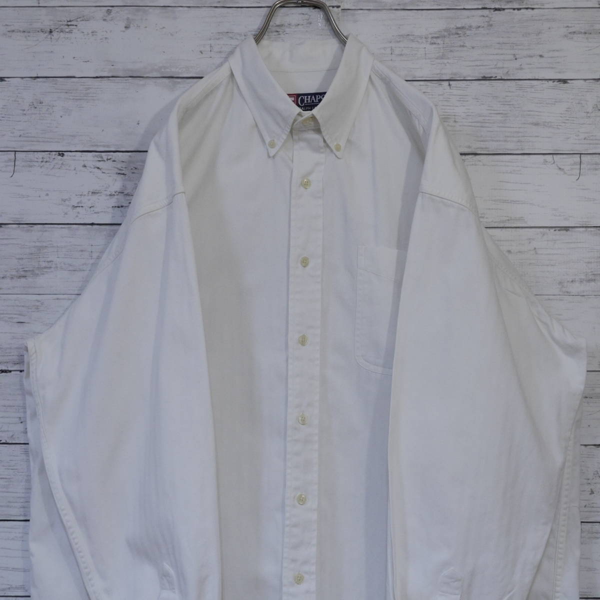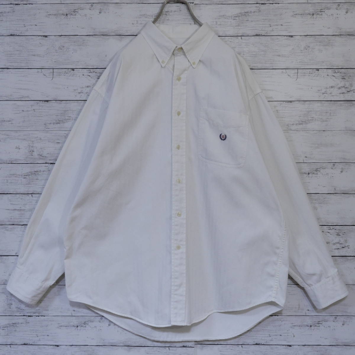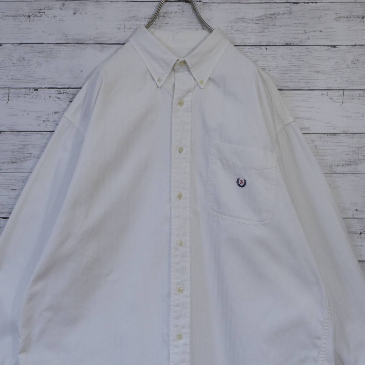 チャップス ラルフローレン CHAPS Ralph Lauren 90s ヘリンボーン 無地 刺繍ロゴポケット 長袖ボタンダウンシャツ BD XL ホワイト 20202262