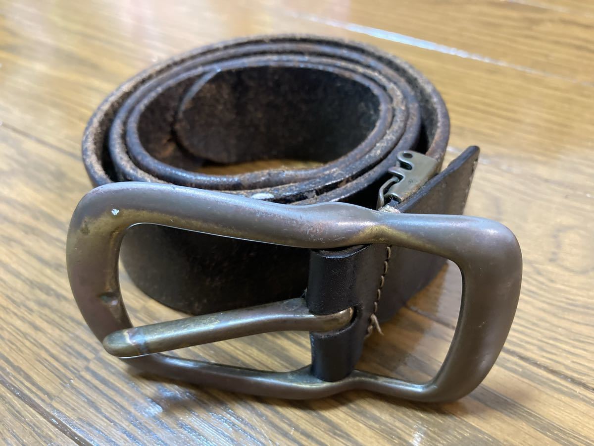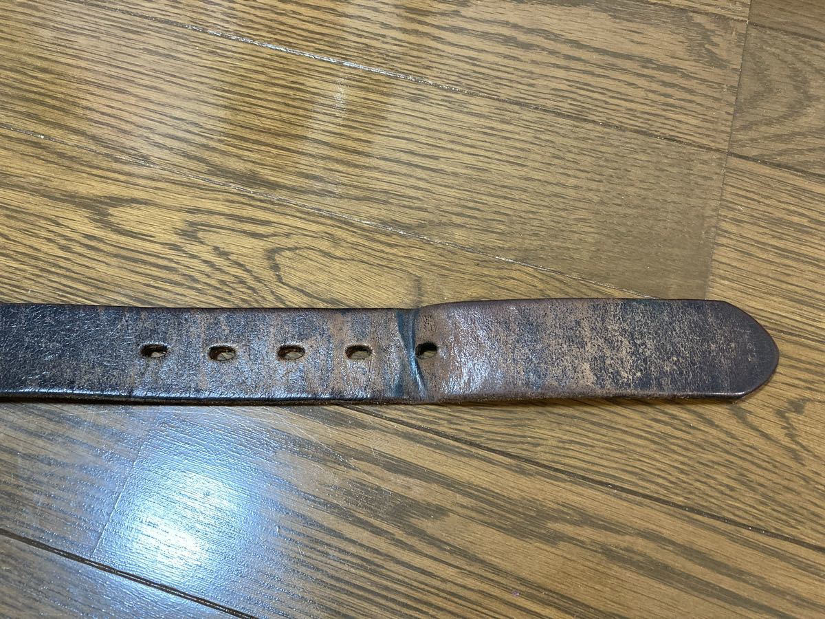 その他:革ベルトです。味が出てきて良い雰囲気になっています。白ペンキの付着があります。ウエストはおおよそ76cm~86cmが対応可能といったサイズ感です。