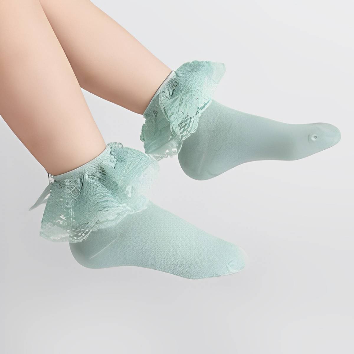 くすみカラー、キッズのドレススカートやフォーマルのお洋服にも良く似合うソックスです。