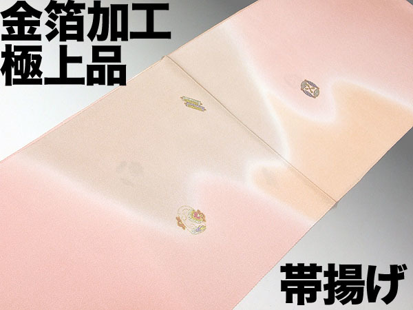 ★TSUNET【新品即決】金箔ちりめん 正絹 手加工 帯揚げ 単品販売 103