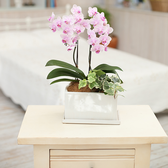 贈答用としてもご自宅用としてもご利用いただける胡蝶蘭ミディ2本立てとなります。