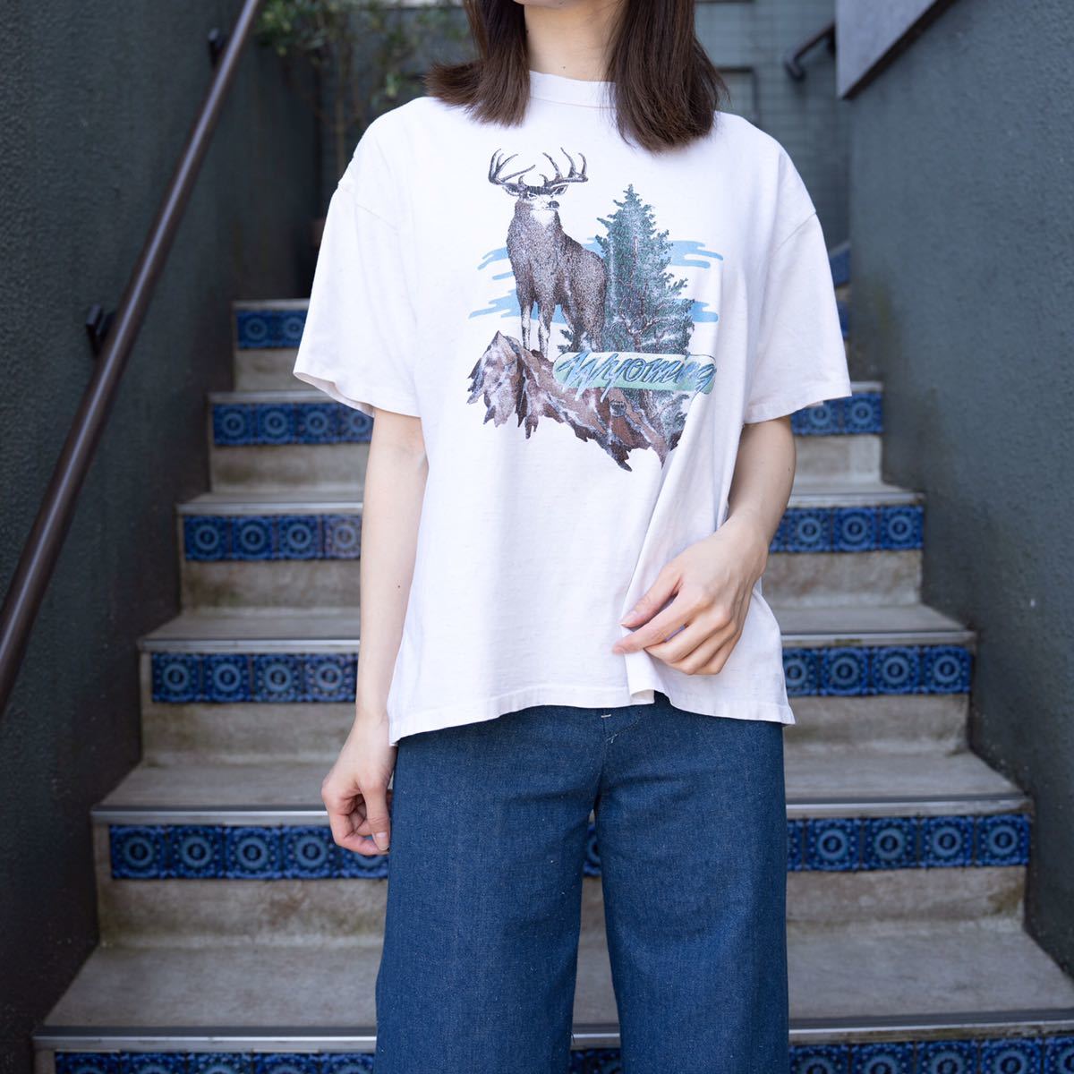 USA VINTAGE DEER PRINT DESIGN T SHIRT MADE IN USA/アメリカ古着シカプリントデザインTシャツ