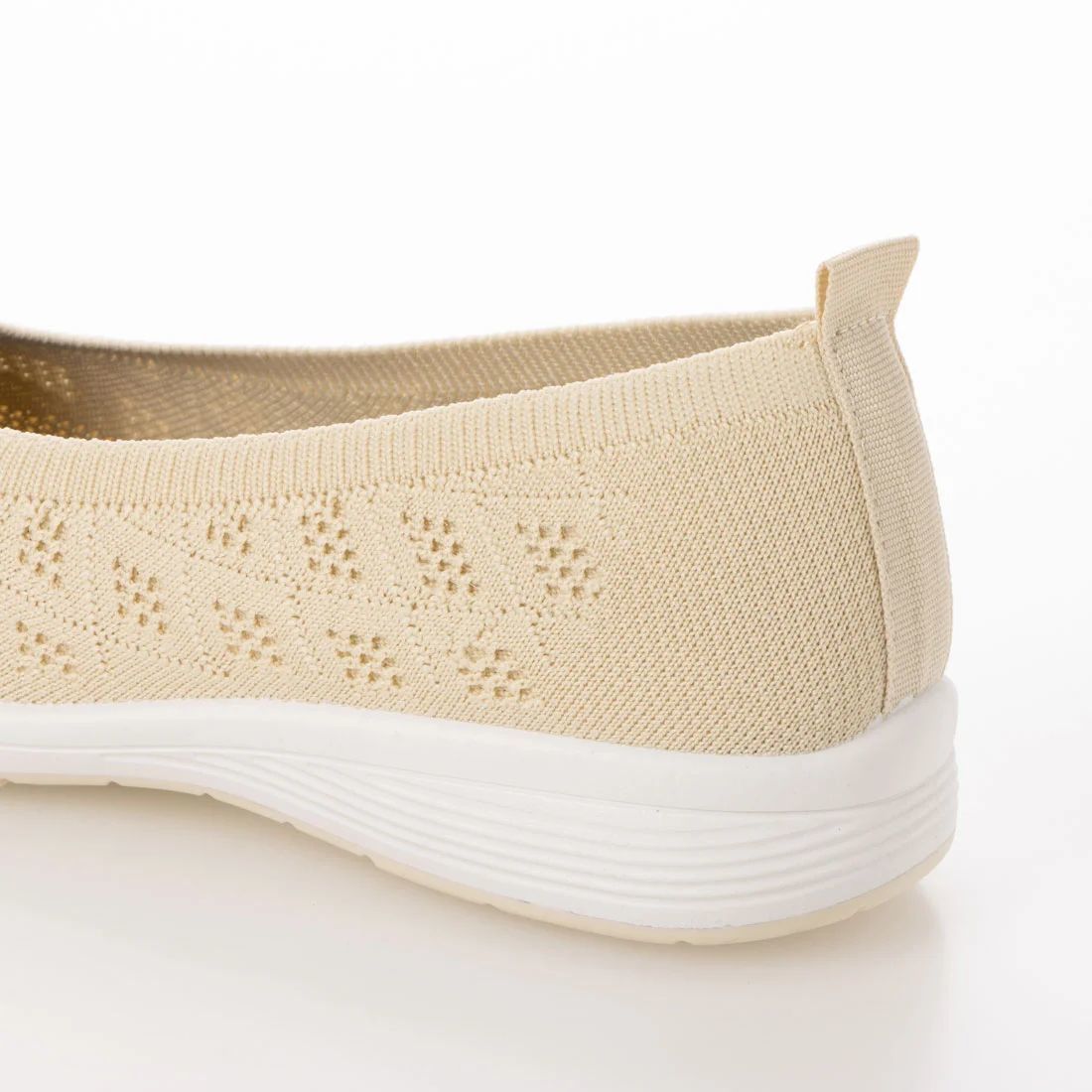 レディース フライニット パンプス フラットシューズ 軽量 通気性 オフィス カジュアル フォーマル 上履き 医療 ベージュ 22538-beg-235