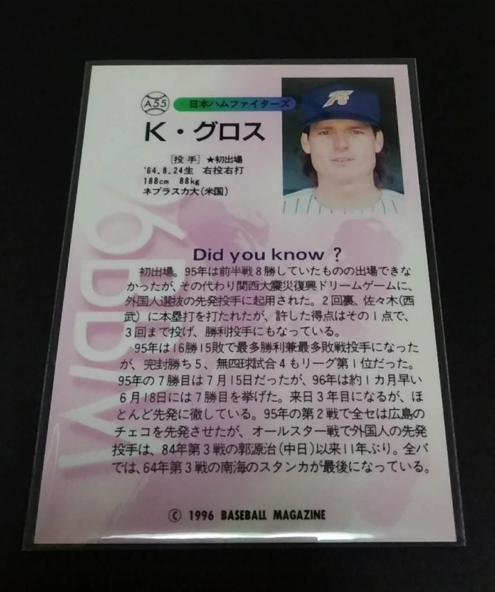 1996年BBM オールスター グロス(日本ハム)No,A55。※表面中央に初期線あり(画像3)