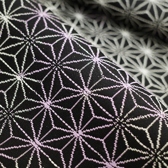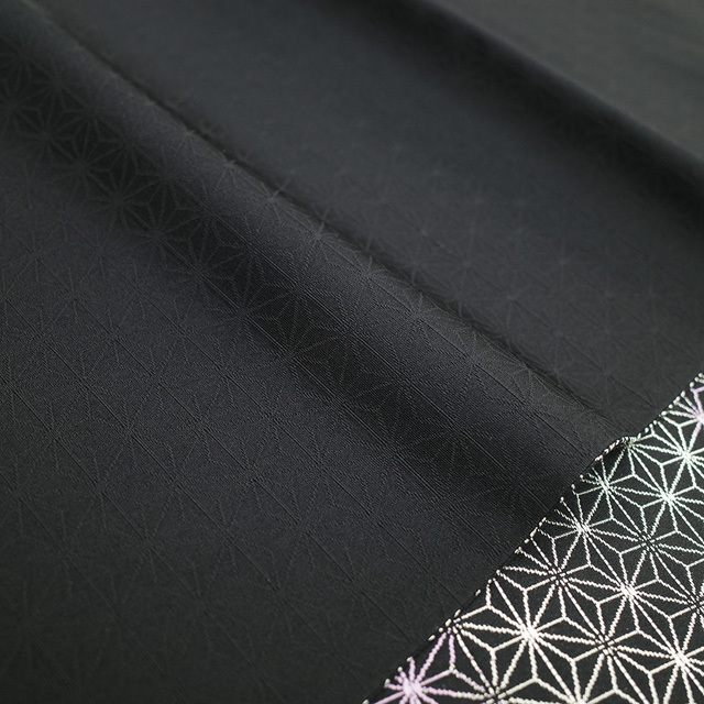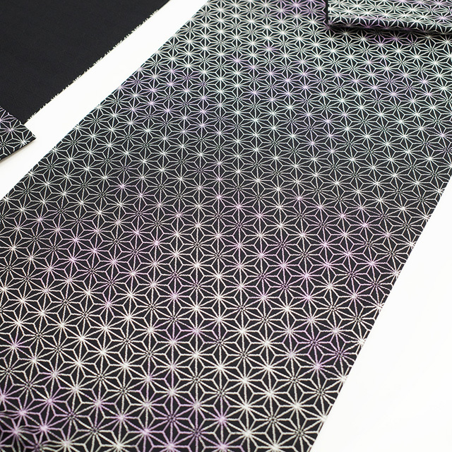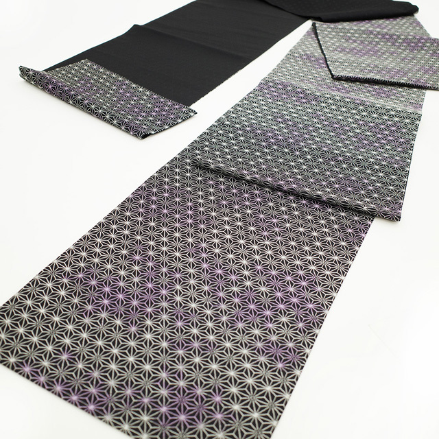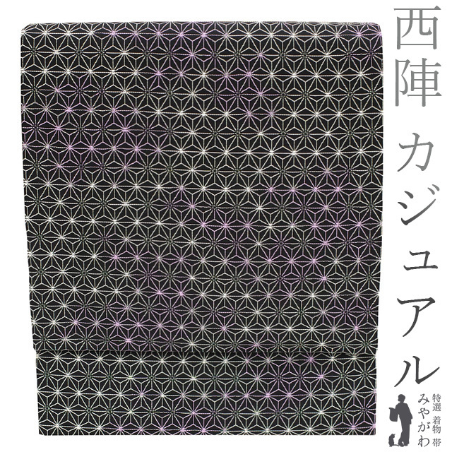 袋帯 京都 西陣 正絹 絹 黒地 ブラック 黒 白 紫 ぼかし 麻の葉 上質 カジュアル ガード加工済み 新古品 仕立て上がり みやがわ sb51455