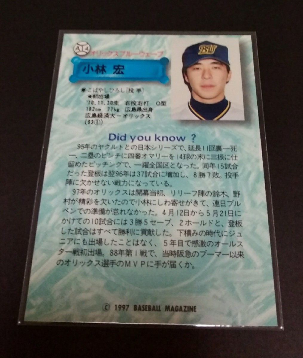 1997年BBM オールスター 小林宏(オリックス)No,A14。