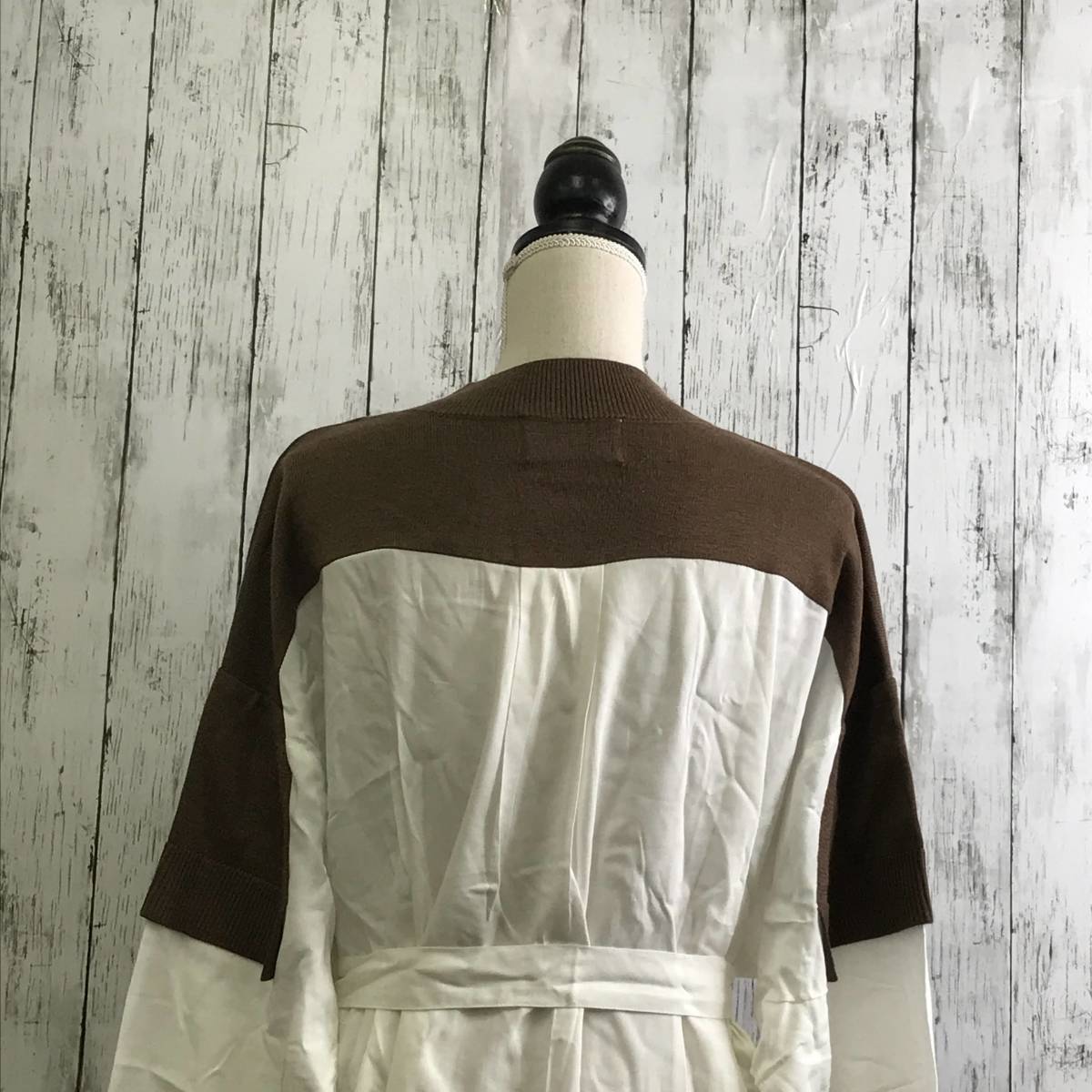 | 商品説明 | 商品名/イレヘムロングベルトシャツワンピースアンサンブル サイズ/S 着丈前69cm後75cm身幅69cm肩幅62cm袖丈53cm 素材/ニット・ポリエステル54%ナイロン20%アクリル20%羊毛6% シャツ・ナイロン100% 商品状態/未使用 |
