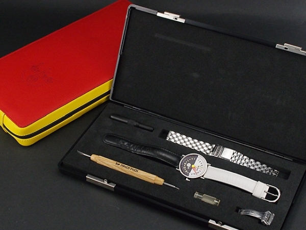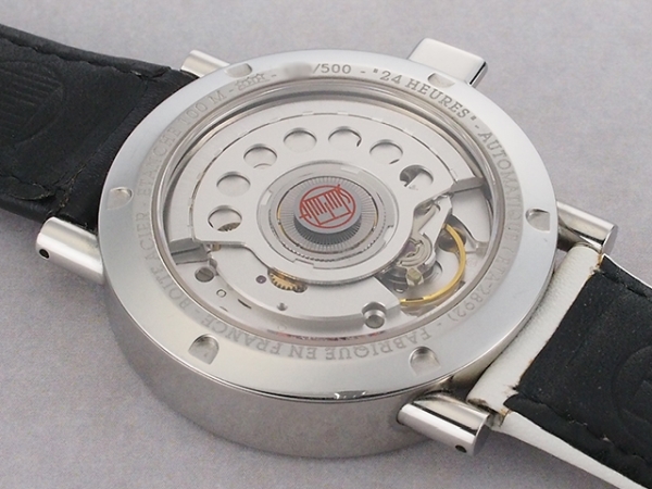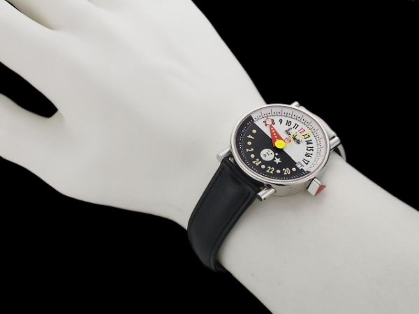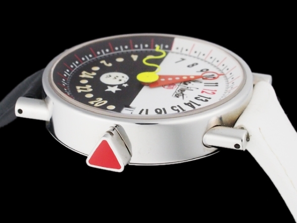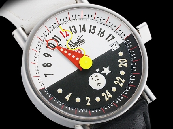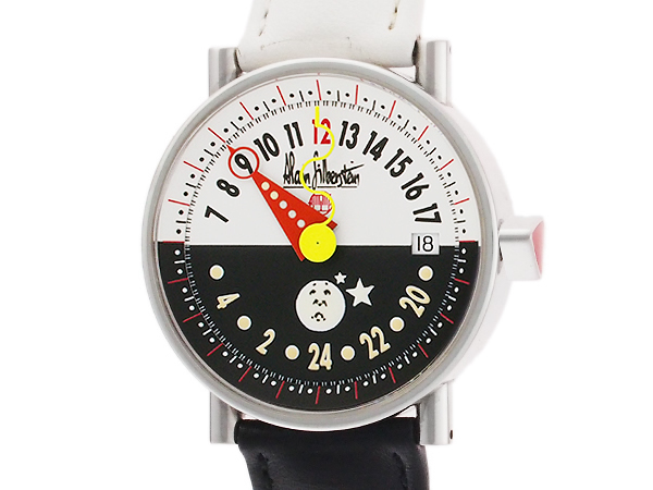 備考:アランシルベスタインならではのアーティスティックな針やリューズ等のデザイン性が非常に高い「24アワーズ」。ホワイトカラーとブラックカラーの文字盤に時・分針が一体化したレッドカラーの針が24時間で1周するようにデザインされた500本限定のユニークなモデルです。