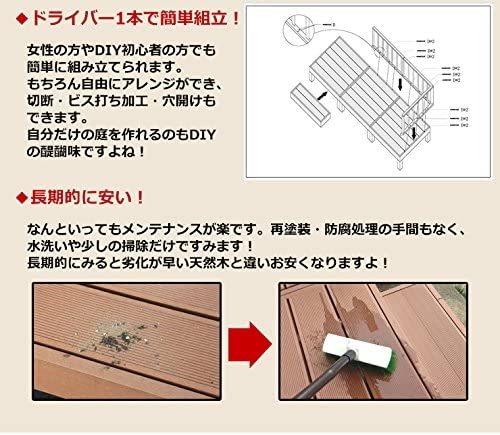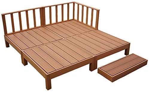 人工木ウッドデッキ 8点セット 1坪 連結用ネジ付 樹脂 デッキ 縁台 (ブラウン)